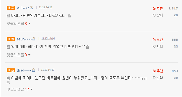 1. [+1,177, -20] Không giống những gia đình bình thường nào cả bởi vì cha của thằng bé là Won Bin …