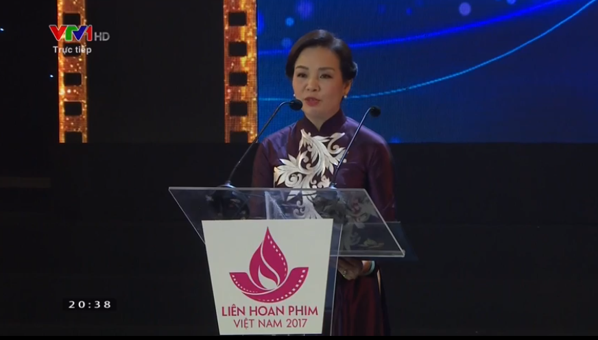 Nữ ca sĩ - diễn viên Phương Thanh nhận giải thay cho đạo diễn Vũ Ngọc Đãng.