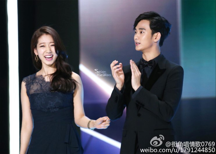 Park Shin Hye và Kim Soo Hyun trên sân khấu trong một lễ trao giải cách đây 2 năm.