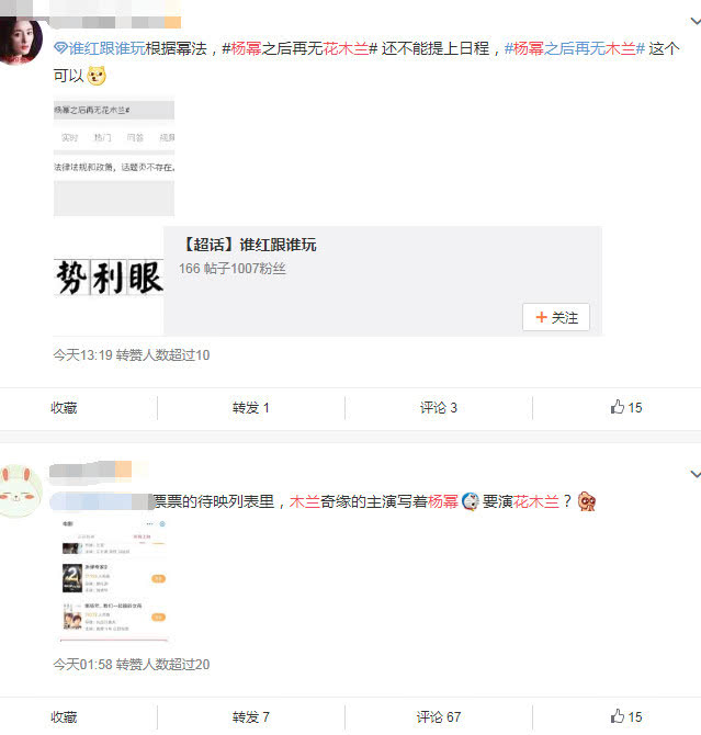Khán giả đều biết, Lưu Diệc Phi tham gia bộ phim điện ảnh Hoa Mộc Lan phiên bản live-action của Disney, nhưng thời gian phát sóng của bộ phim này là năm 2020. Nếu tin tức phía trên là sự thật thì Hoa Mộc Lan phiên bản Dương Mịch sẽ ra mắt khán giả trước Hoa Mộc Lan của Lưu Diệc Phi, như thế sẽ trở thành một chuyện nghiêm trọng.