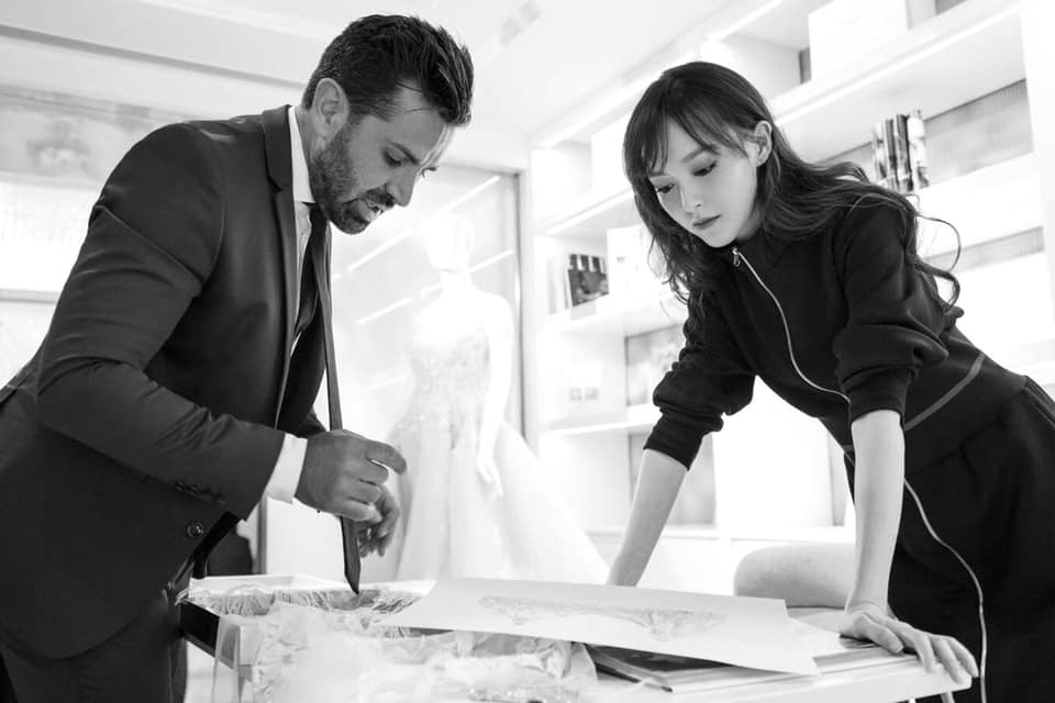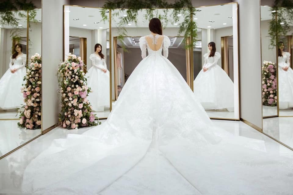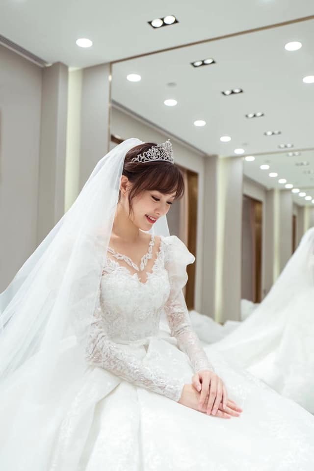 Một số hình ảnh của mỹ nhân 34 tuổi tại cửa hàng của thương hiệu Mikeal D đã được tiết lộ kèm trạng thái: “Khoảnh khắc cô ấy cùng tôi nghiên cứu, bàn về mẫu áo cưới, đôi mắt cô ấy sáng lấp lánh và gương mặt tràn đầy niềm hạnh phúc của một cô gái sắp cưới”.