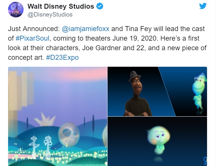 Jamie Foxx và Tina Fey sẽ trở thành người lồng tiếng chính cho tác phẩm hoạt hình mới của Pixar mang tên Soul. Bộ phim ban đầu chỉ đạo bởi Pete Docter, người trước đây từng làm đạo diễn của Monsters, Inc., Up, Inside Out tại studio.