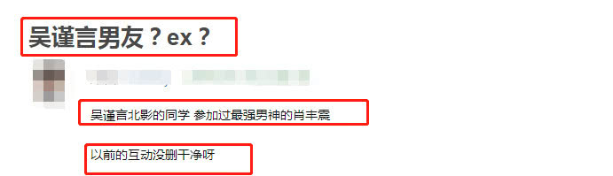 Hai năm liên tiếp những người bạn này đều thường xuyên đăng weibo nhắc đến Ngô Cẩn Ngôn và Tiêu Phong Chấn, đồng thời cho biết rằng Ngô Cẩn Ngôn là người Tiêu Phong Chấn yêu thương nhất. Cuối cùng còn thành tâm chúc phúc cho Ngô Cẩn Ngôn và Tiêu Phong Chấn mãi mãi hạnh phúc. Từ đó có thể thấy, Tiêu Phong Chấn quả thực là bạn trai Ngô Cẩn Ngôn.