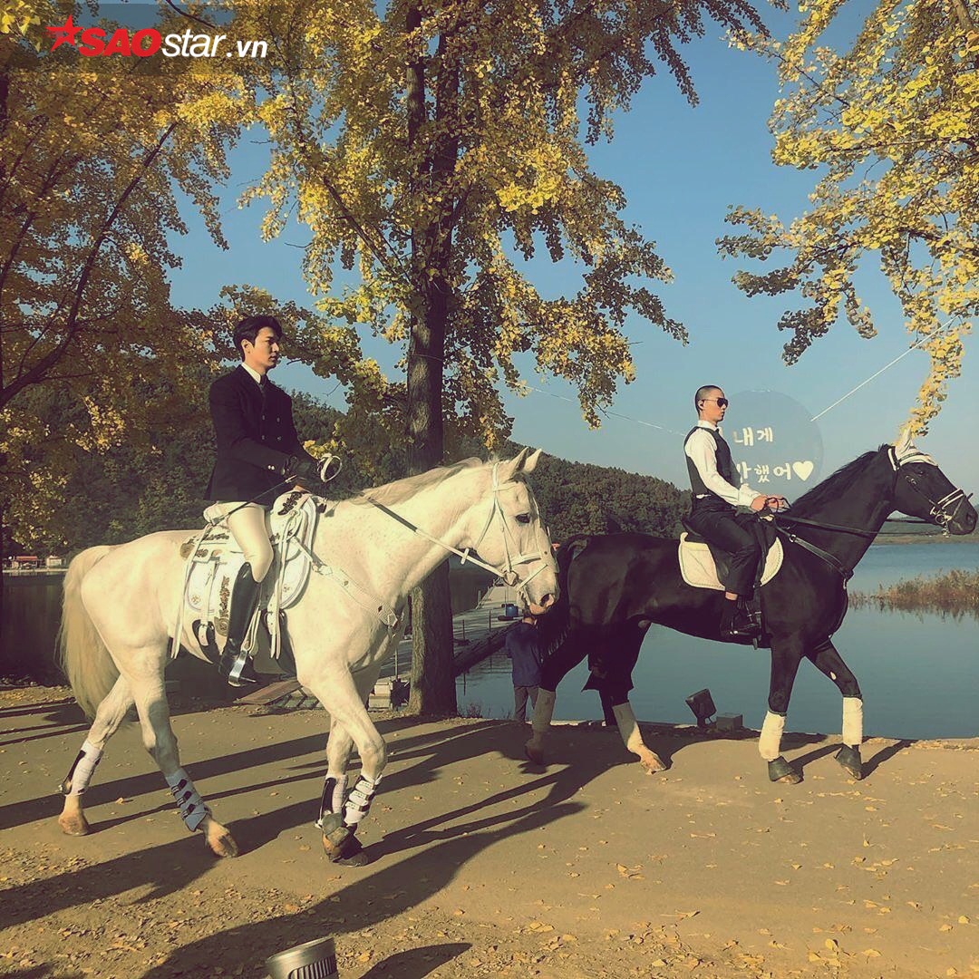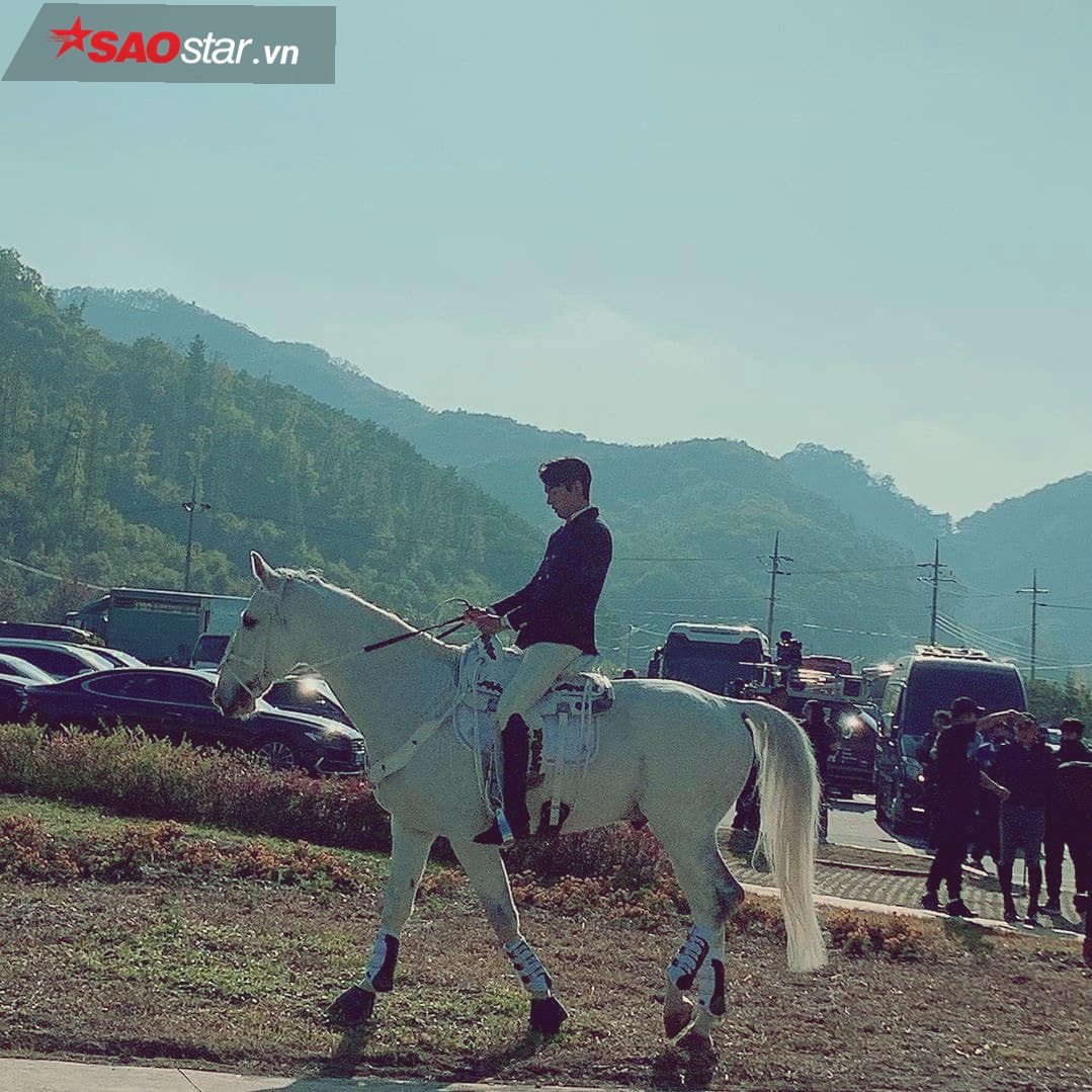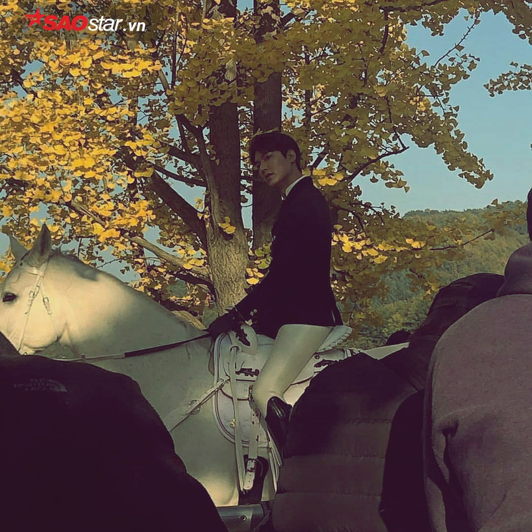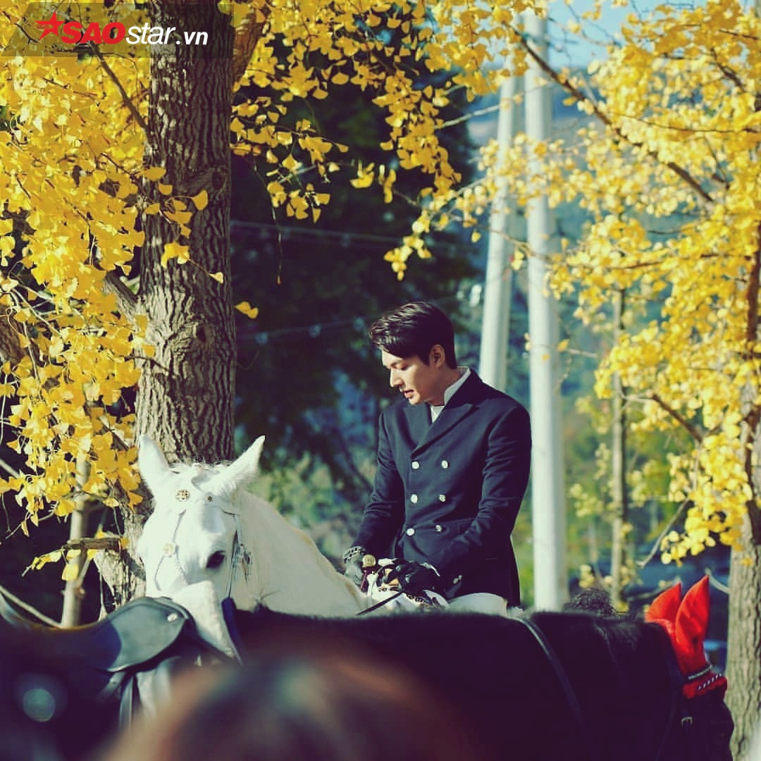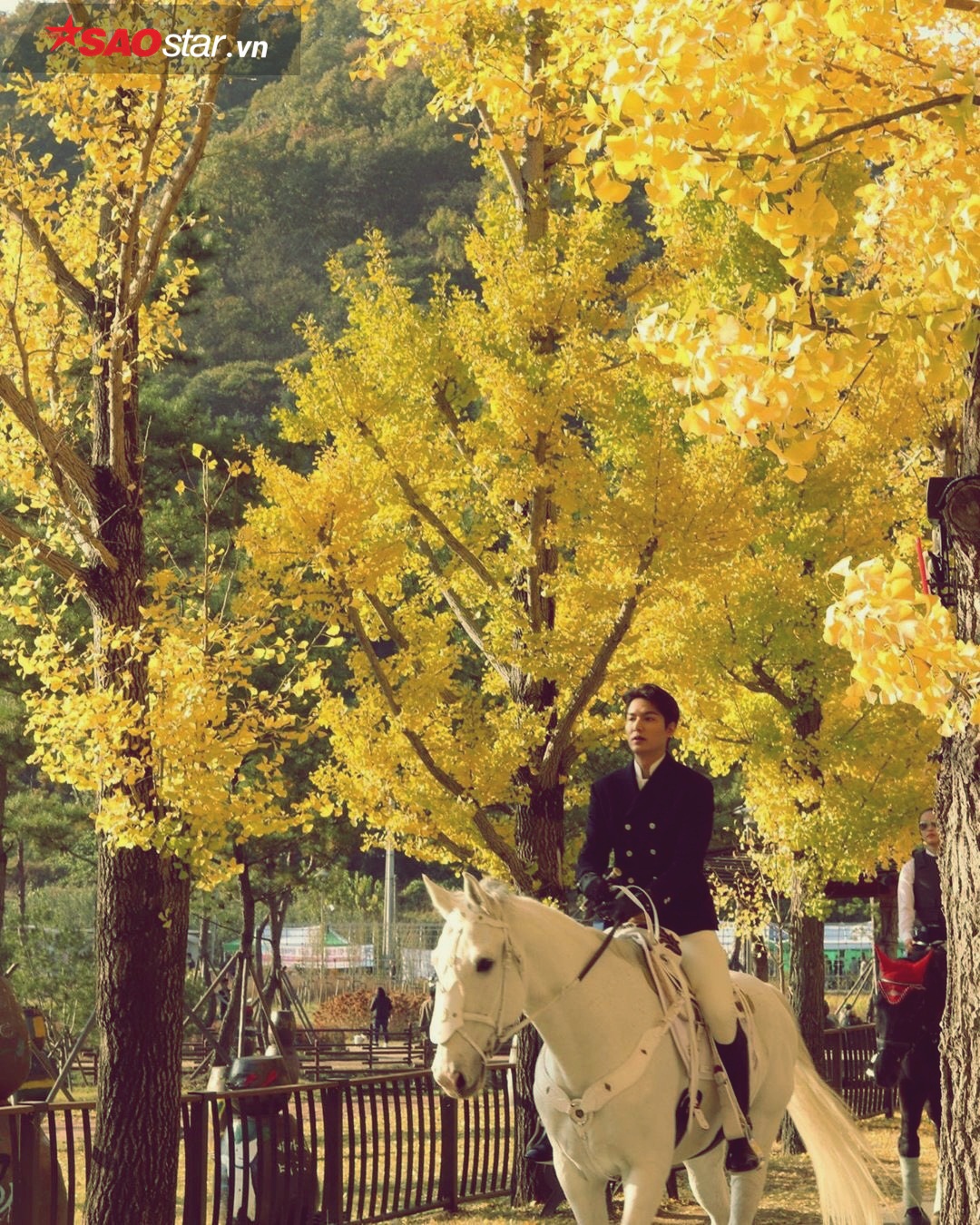 Trong những hình ảnh do các fan chụp được và chia sẻ, Lee Min Ho đang thực hiện các cảnh quay với ngựa, xung quanh nam diễn viên là khung cảnh vô cùng thơ mộng và tuyệt đẹp với những hàng cây ngập sắc lá vàng của mùa thu.