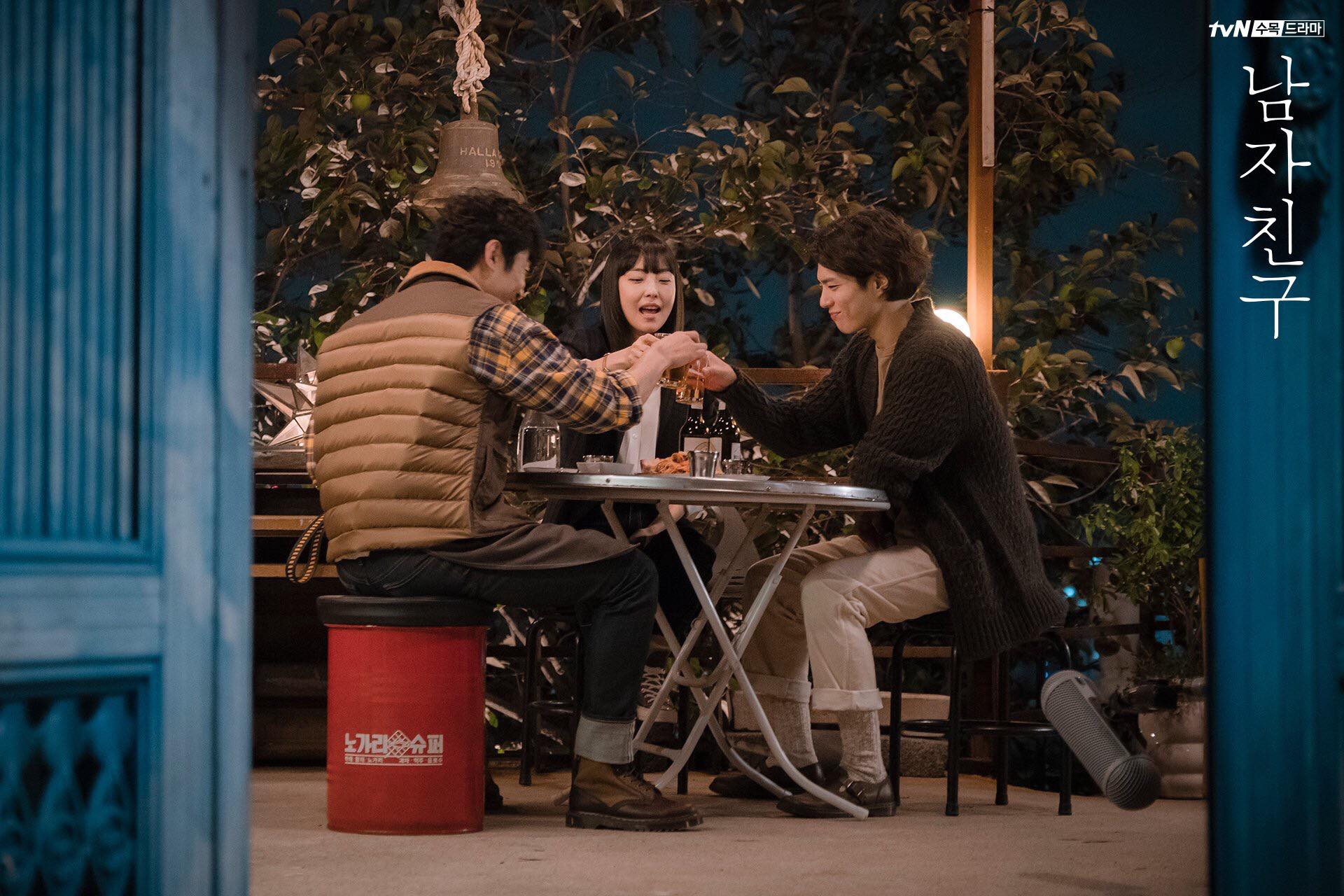 Trong những bức ảnh, Kim Jin Hyuk vui vẻ ăn nhậu cùng với hai người bạn Jo Hye In (Jeon So Ni) và Lee Dae Chan (Kim Joo Heon). Được biết, Jo Hye In là cô bạn thân từ thời thơ ấu của Kim Jin Hyuk. Cô nàng đã “cảm nắng” và nuôi dưỡng tình cảm đặc biệt dành cho anh. Trong khi, Lee Dae Chan là một “tiền bối” tối bụng luôn bên cạnh, quan tâm và theo dõi Jin Hyuk Qua bức ảnh, người xem có thể cảm nhận được sự thân thiết, thoải mái khi cả ba ngồi cạnh nhau trong cửa hàng của Lee Dae Chan.