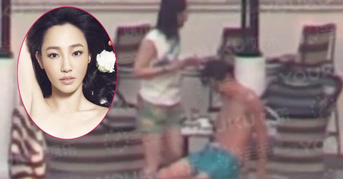 Clip Bạch Bách Hà tình tứ với trai trẻ ở bể bơi.