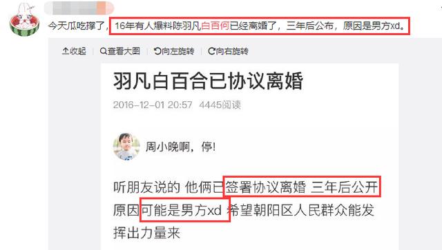 Hôm nay, có cư dân mạng đã “khơi lại” chuyện ly hôn giữa Trần Vũ Phàm và Bạch Bách Hà năm xưa, trong một bài viết vào năm 2016 đã bình luận rằng: “Hai người đã ký thỏa thuận ly hôn từ trước và sau đó 3 năm mới công khai. Nguyên nhân rất có thể do Trần Vũ Phàm sử dụng ma túy, thời gian 3 năm hoàn toàn khớp với lời Trác Vỹ đã nói trước đây. Xem ra không hề có chuyện Bạch Bách Hà ngoại tình dẫn đến hôn nhân đổ vỡ, có lẽ cô ấy đã bị hiểu lầm suốt mấy năm qua.
