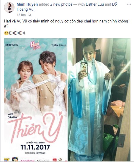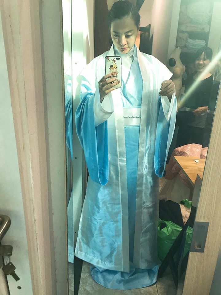 Mới đây, trên trang cá nhân của nhà thiết kế Minh Huyền, cô đã chia sẻ hình ảnh bộ trang phục được cho là của nam chính Tuấn Trần trong Thiên ý. Thiết kế mang đậm chất cổ trang với màu xanh nhẹ nhàng, phải chăng vai diễn của Tuấn Trần trong phim là một chàng thư sinh hiền lành?