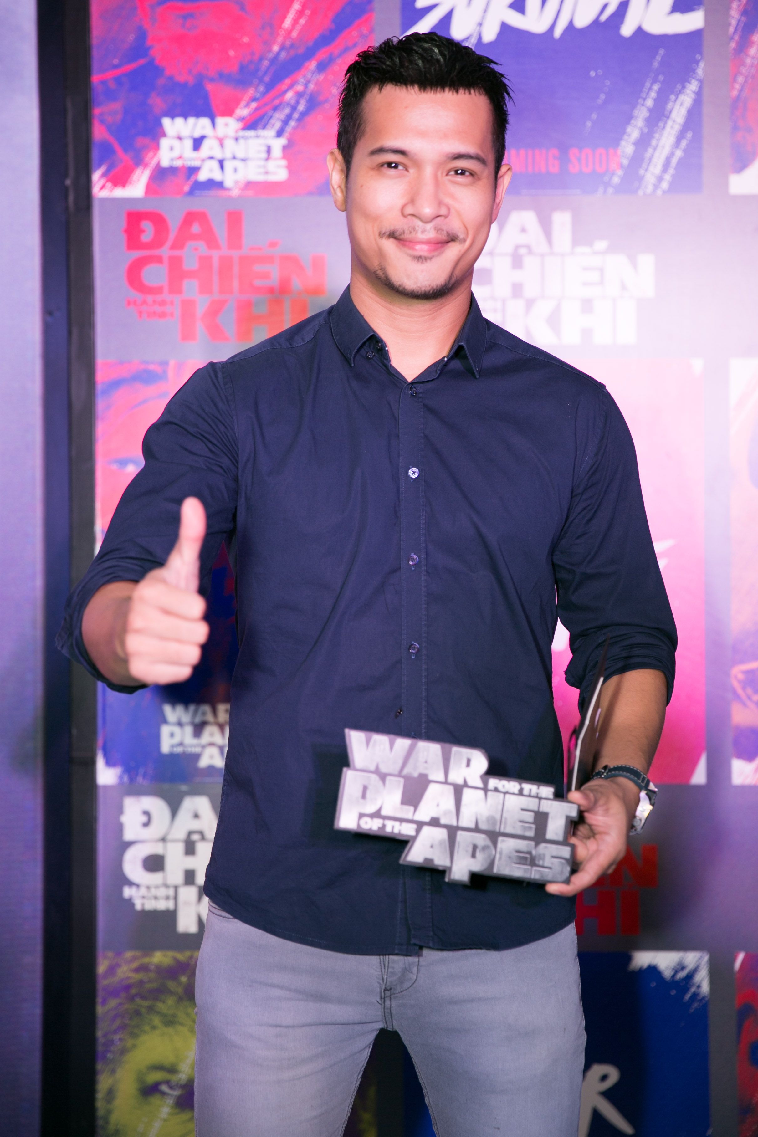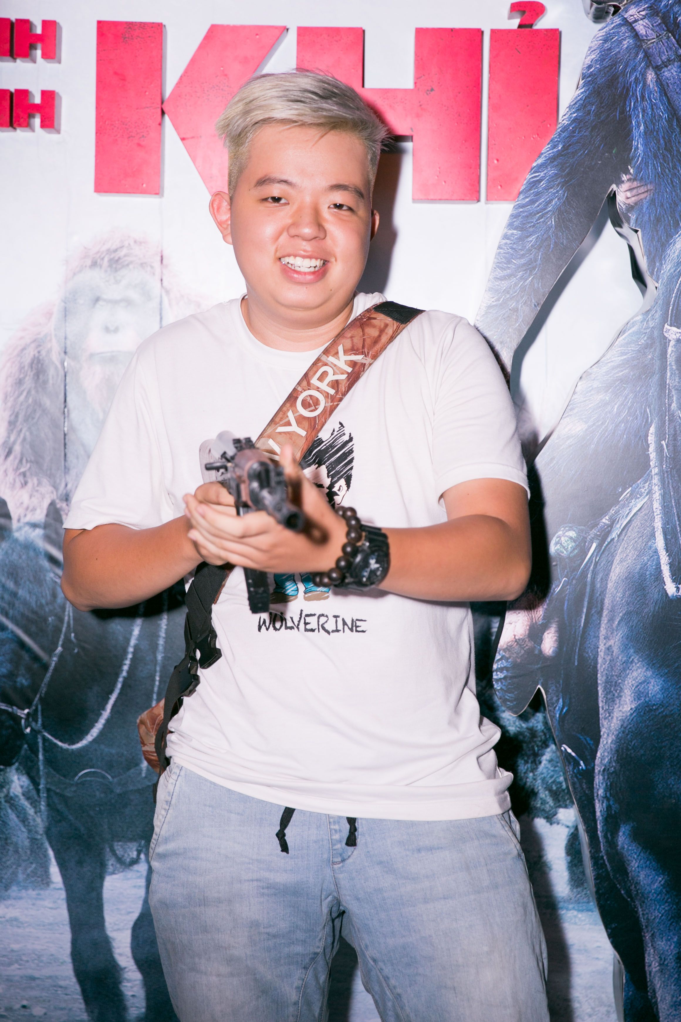 Mặc dù vắng mặt bạn gái Thái Trinh nhưng anh chàng dancer vẫn háo hức đón xem War for the Planet of the Apes.
