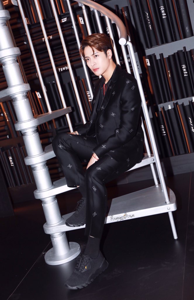 Jackson Wang đến tham dự phần trình diễn của thương hiệu Fendi trong Tuần lễ thời trang Milan, Italy.