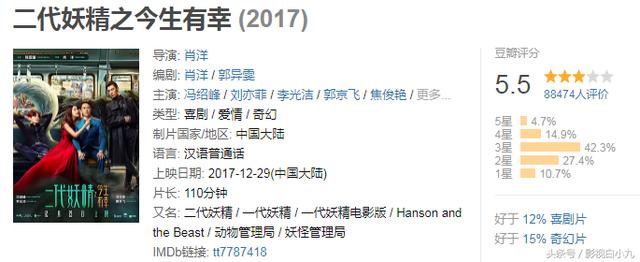 Bộ phim điện ảnh Nhị đại yêu tinh chỉ được đánh giá 5,5 điểm trên Douban. Nhị đại yêu tinh do Lưu Diệc Phi và Phùng Thiệu Phong đóng chính, đây là bộ phim hài đầu tiên của Phùng Thiệu Phong và cũng là tác phẩm đánh dấu sự tái hợp của hai người sau 6 năm kể từ phim Hồng Môn yến. Tuy có sự kết hợp của hai ngôi sao có chỉ số nhan sắc và đầu tư khá công phu cho kỹ xảo nhưng vẫn bị người xem đánh giá nội dung quá hời hợt.