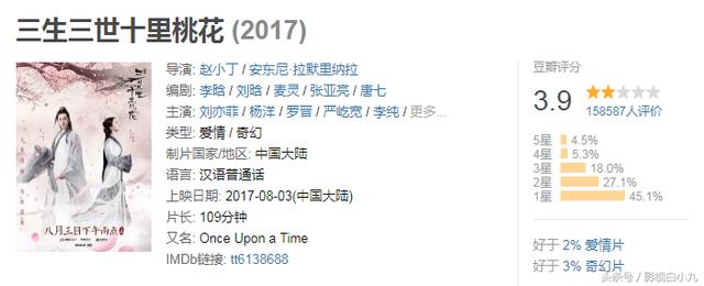 Tam sinh tam thế: Thập lý đào hoa dù được xem như một tác phẩm điện ảnh lớn của năm 2017 nhưng vẫn bị đánh giá ở điểm số thấp là 3,9 điểm, một điểm số thất vọng, xấu hổ cho một bộ phim có kịch bản tốt và dàn diễn viên hùng hậu.