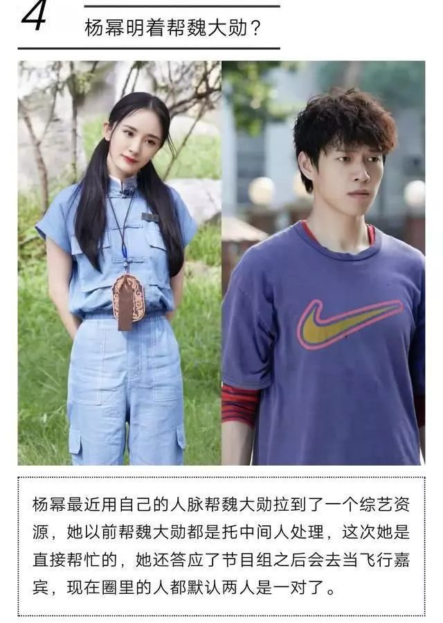 Gần đây, một nguồn tin lan truyền trên mạng cho biết tình cảm giữa Ngụy Đại Huân và Dương Mịch vô cùng tốt. Dương Mịch còn dựa vào những mối quan hệ quen biết của mình kéo về cho Ngụy Đại Huân rất nhiều tài nguyên. Những người trong giới đều biết rõ và ngầm hiểu rằng cả hai là một đôi.