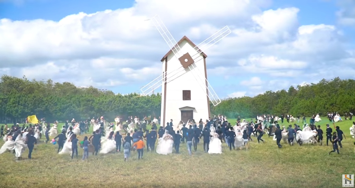 Cối xay gió khổng lồ và đại cảnh xuất hiện 200 cặp cô dâu chú rể