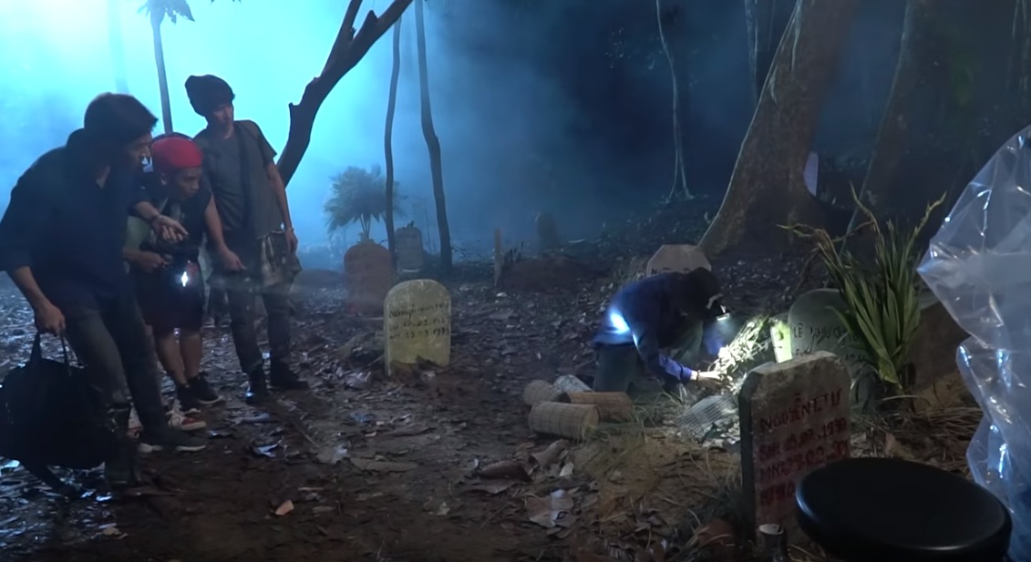 Hàng trăm ngôi mộ sẽ phải tương ứng với những cái tên “người đã khuất” ghi lại trên bia nên nhằm tránh sự trùng hợp tình cờ có thể gây rắc rối không đáng có, đội ngũ hậu trường đã buộc phải dùng tên tuổi của… chính các anh em trong đoàn để tạc lên những ngôi mộ giả kia. Tưởng mọi người sẽ sợ nhưng bất ngờ là mọi người lại thích và còn hóm hỉnh selfie bên tấm bia mộ có tên mình như một kỷ niệm đáng yêu trong quá trình quay phim.