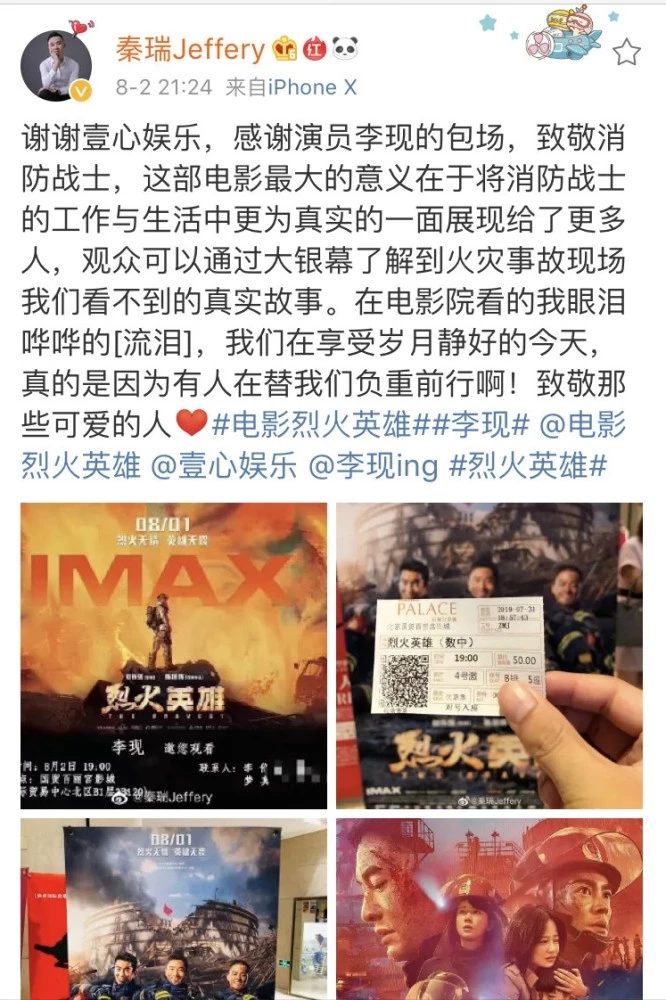 Theo như những gì cư dân mạng đăng tải thì Lý Hiện bao cả rạp phim vào tối 7 giờ này 2 tháng 7, đồng thời viết rõ do Lý Hiện mời khách, hy vọng mọi người có thể ủng hộ đạo diễn, giám chế của bộ phim cũng như Dương Tử.