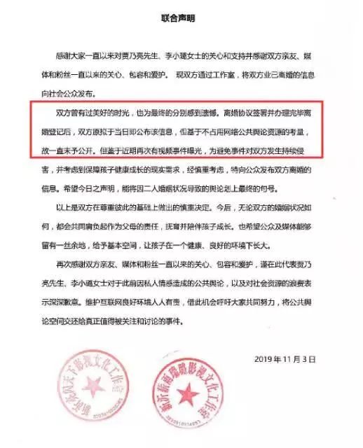 Khi bài thông báo ly hôn được đăng tải, ngay lập tức rất nhiều bloggers đưa tin “Nguyên nhân thực sự dẫn đến việc ly hôn là vì đứa con trong bụng Lý Tiểu Lộ. Nhân lúc đứa nhỏ chưa sinh mà xử lý xong mối quan hệ, để Lý Tiểu Lộ và PGone về chung một nhà”.