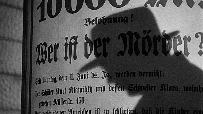 Đây là cảnh đầu tiên trong M - bộ phim kinh điển của điện ảnh Đức cũng như cả nhân loại, ra đời năm 1931 dưới sự hợp tác của Fritz Lang và vợ ông (khi đó) - Thea von Harbou. Trong di sản hai người để lại, nếu Metropolis là một trong những đại diện sớm nhất của dòng phim sci-fi, thì M là tác phẩm báo trước cho sự ra đời của thể loại film noir sau này. Tuy được sản xuất cách đây gần 90 năm, M vẫn là một bộ phim có tư tưởng vô cùng hiện đại đối với khán giả ngày nay, khơi gợi những suy ngẫm sâu sắc về con người, tội ác và công lý.