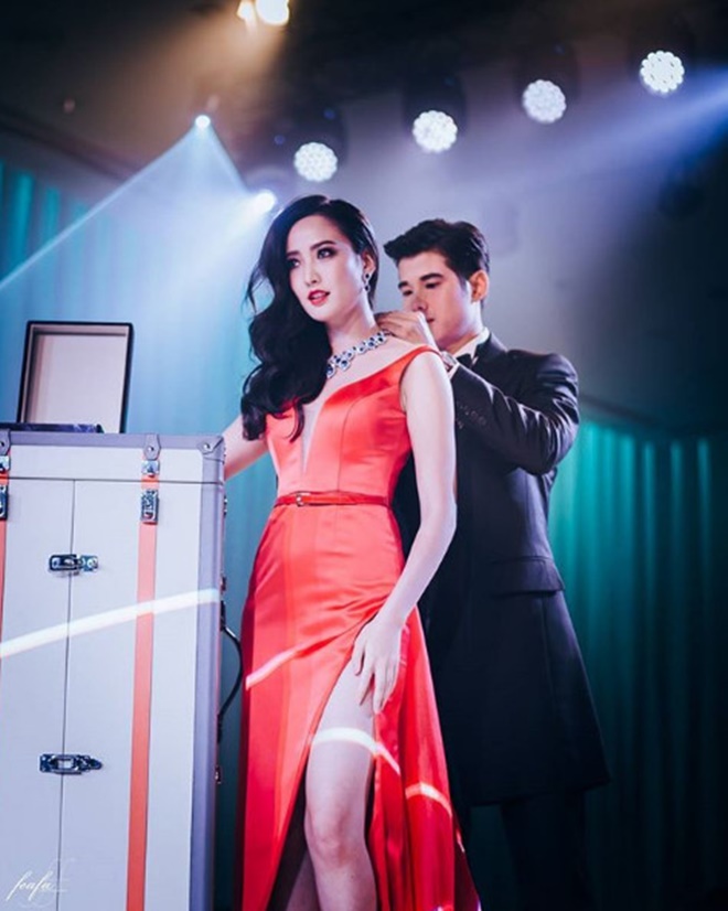 Tối 24/11, thương hiệu trang sức nổi tiếng Thái Lan đã tổ chức sự kiện ra mắt bộ sưu tập kim cương mới. Xuất hiện tại sự kiện, nam diễn viên Mario Maurer khoác lên mình vest đen lịch lãm. Đồng hành cùng Mario là “nữ thần rắn” Taew Natapohn, cô thu hút mọi ánh nhìn với đầm đỏ cổ sâu xẻ đùi sang trọng, quyến rũ.