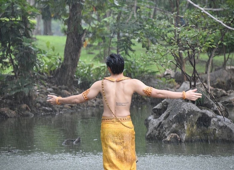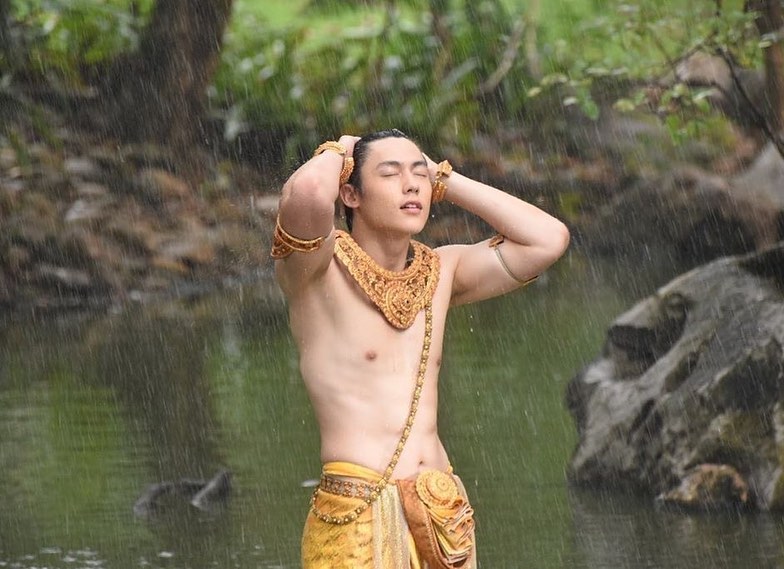 Cảnh quay gần suối, dưới cơn mưa tiếp tục cho khán giả thấy ngoại hình sáu múi của Mark Prin.