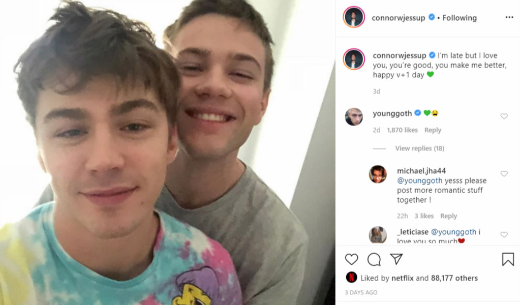 Mới đây trên trang Instagram cá nhân của mình, ngôi sao của bộ phim truyền hình Locke & Key - Connor Jessup - đã chia sẻ tấm ảnh selfie chụp chung với nam diễn viên Miles Heizer, người được biết đến với vai diễn Alex trong series phim tuôi teen đình đám 13 Reasons Why. Điều đáng chú ý hơn cả là dòng trạng thái mùi mẫn mà Connor dành cho đối phương, qua đó chính thức công khai về mối quan hệ của hai người.