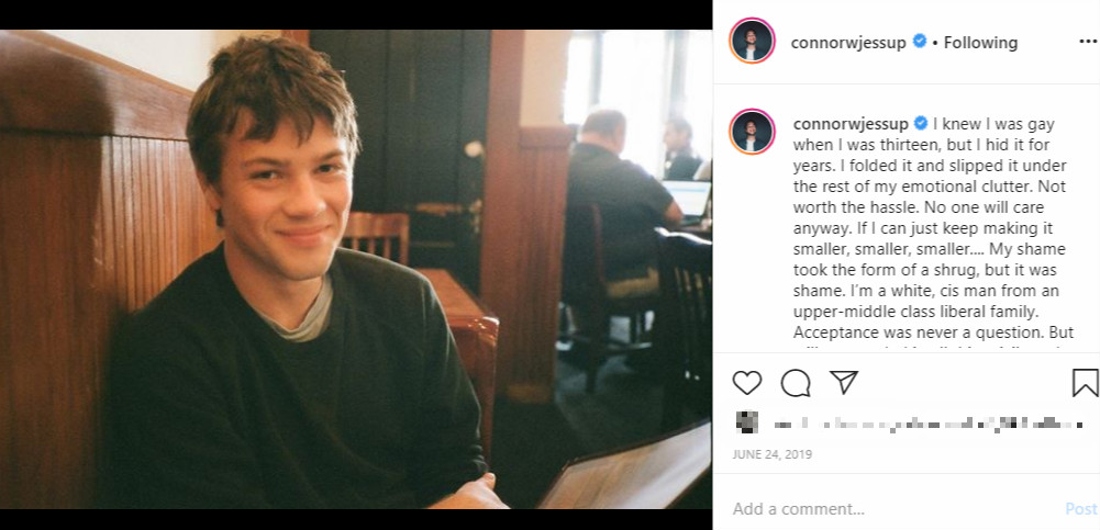 Trước đó vào năm 2019, Connor Jessup đã công khai mình là người đồng tính trong một bài đăng trên Instagram, kể về quãng thời gian anh phải che giấu với mọi người cùng với những khó khăn mà mình phải trải qua.