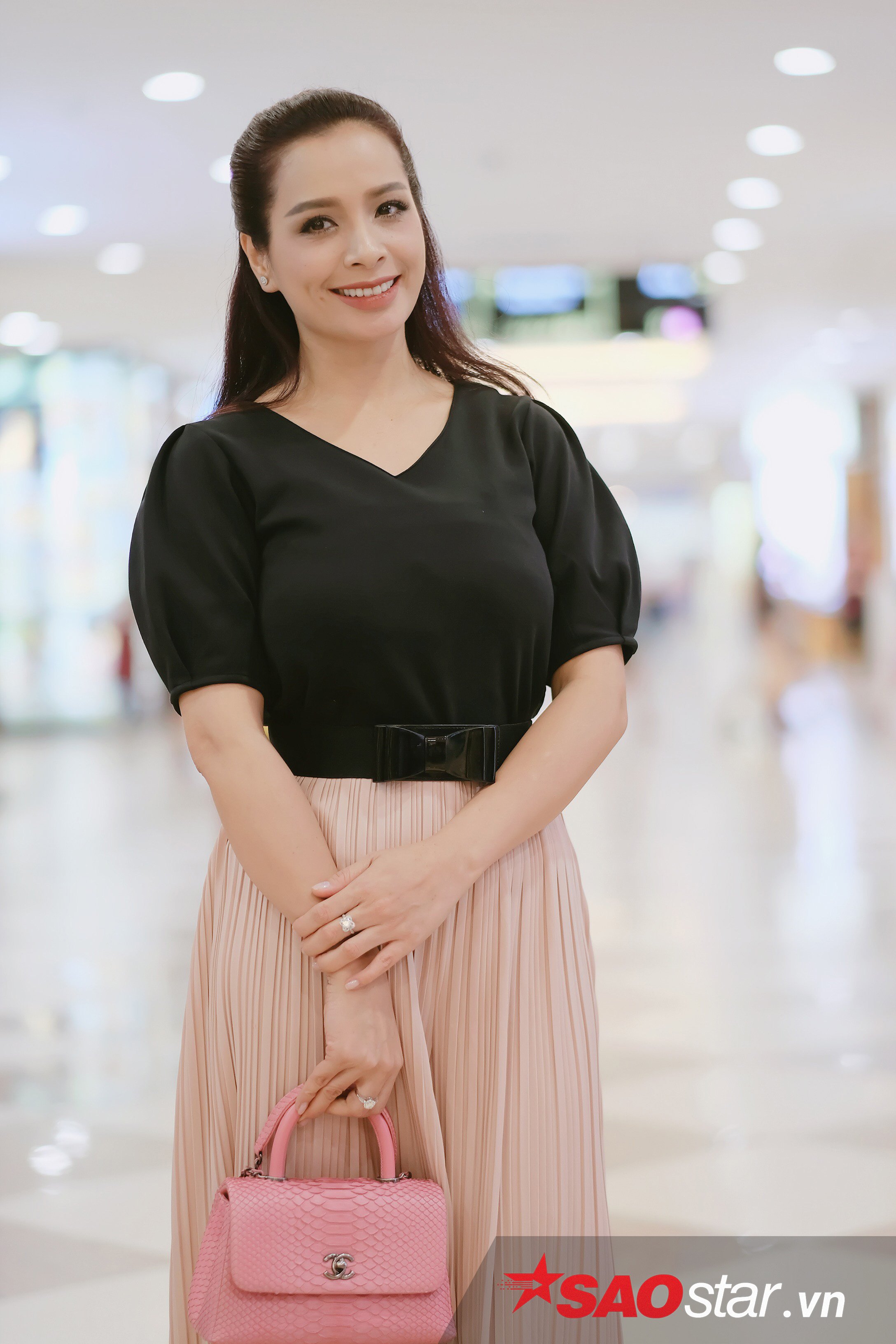 Dù lịch trình bận rộn nhưng Minh Hằng vẫn giữ được vẻ rạng ngời trên khuôn mặt.