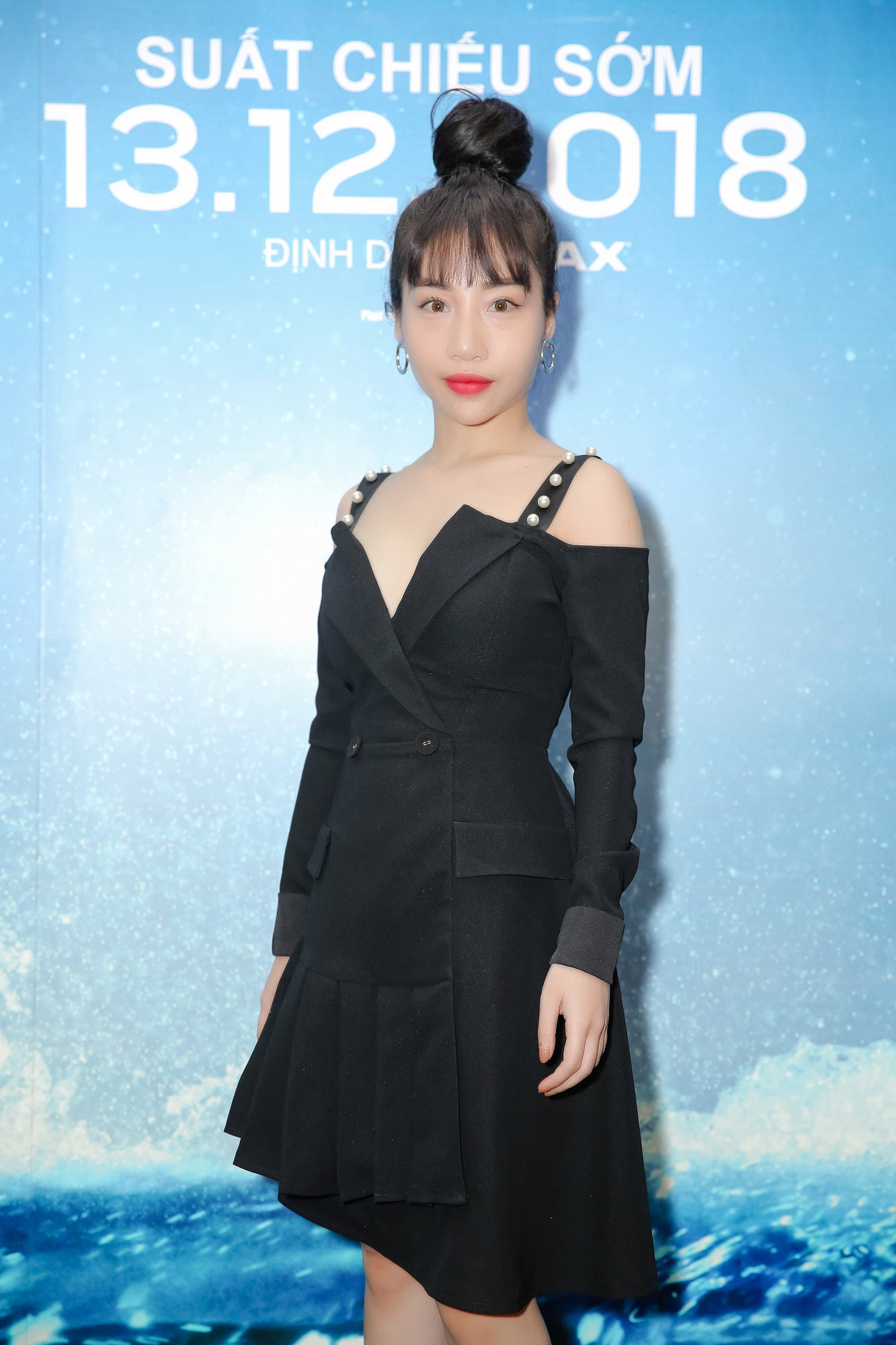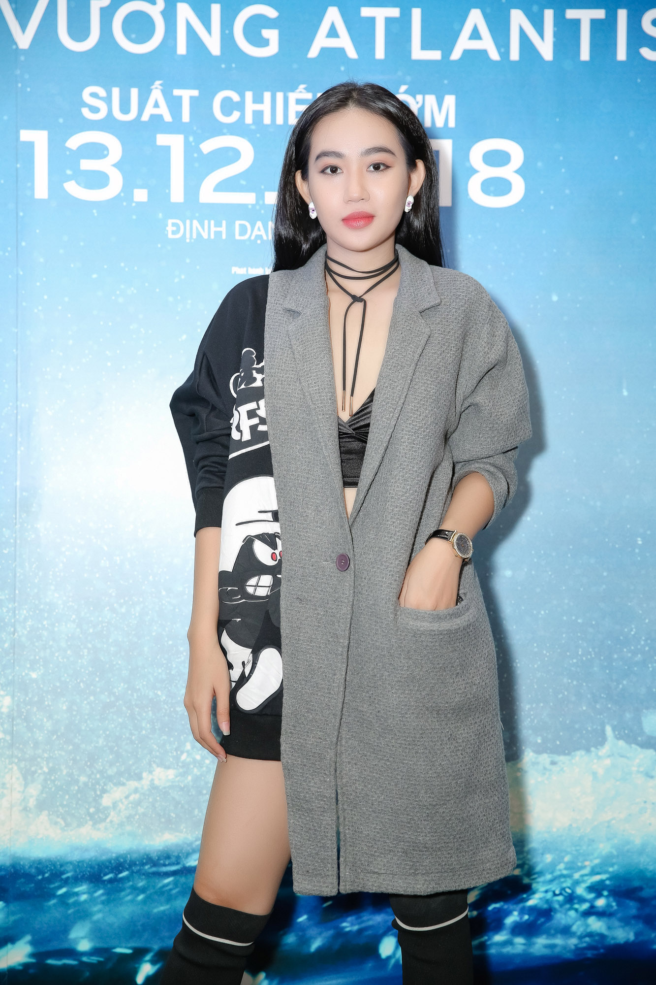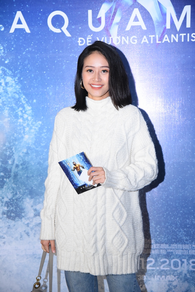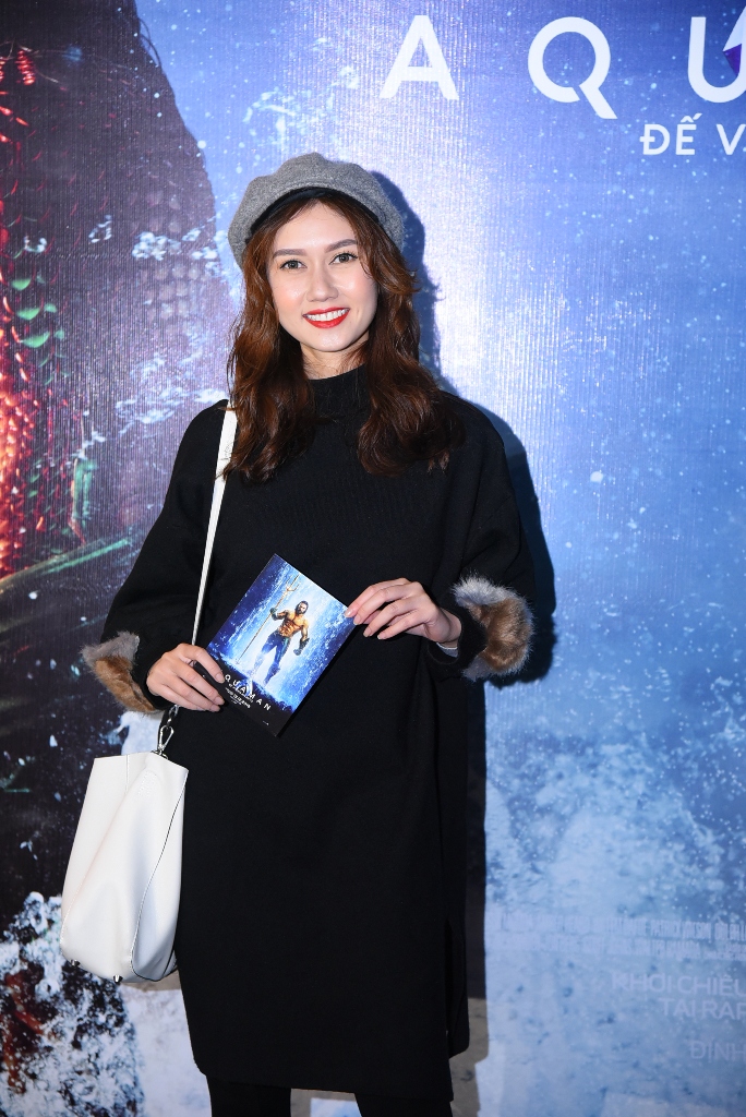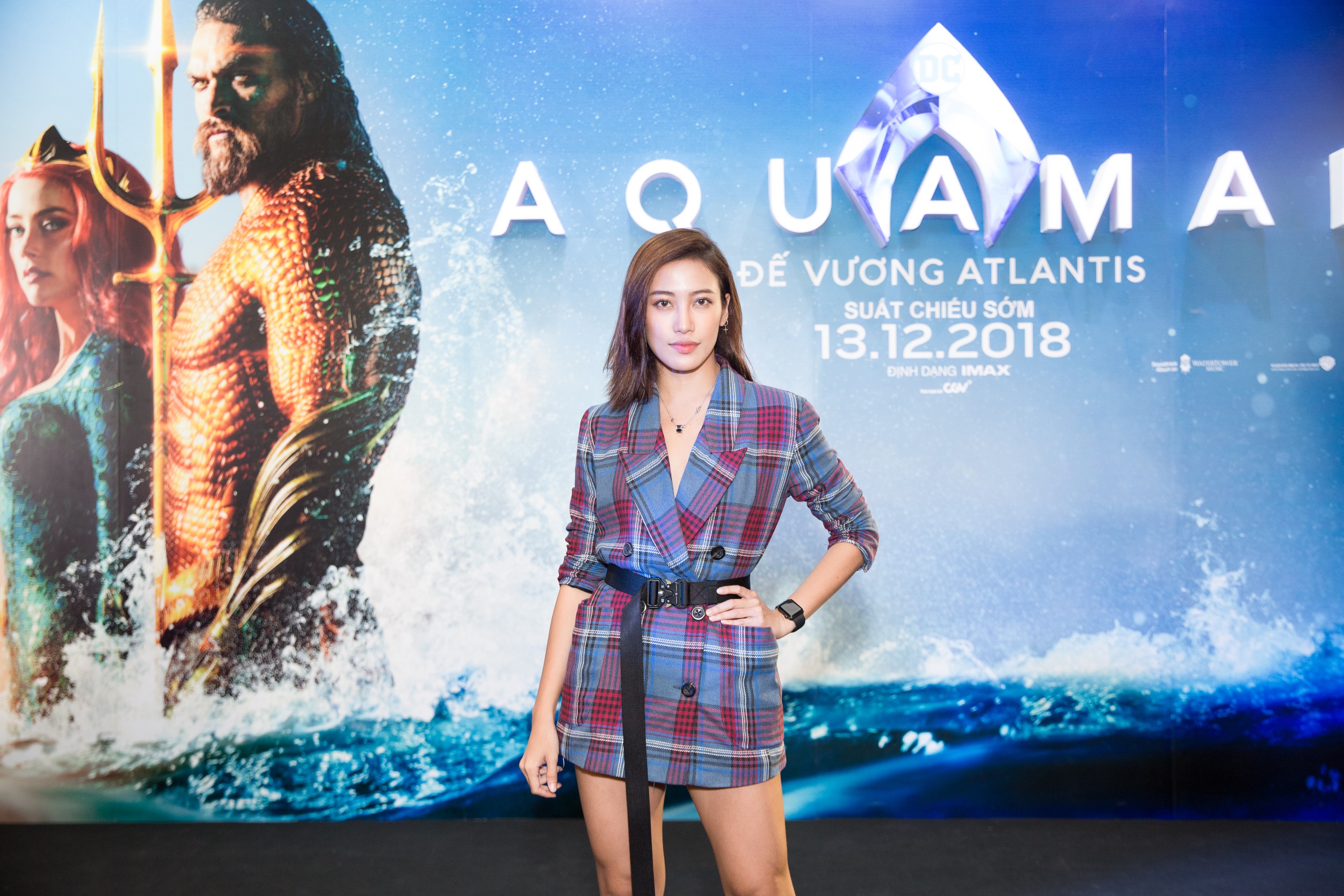 Sau khi trở về từ cuộc thi Miss Supranational 2018 tại Ba Lan, Hoa hậu châu Á Minh Tú đã đến tham dự sự kiện họp báo ra mắt Aquaman. Kết hợp phong cách menswear với sự gợi cảm bằng áo ren xuyên thấu phía trong như một loại nội y, nữ siêu mẫu “đốt mắt” tất cả khách mời tham dự.