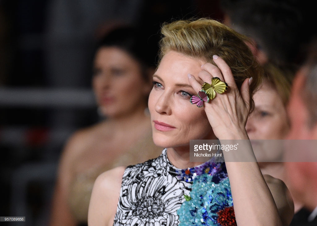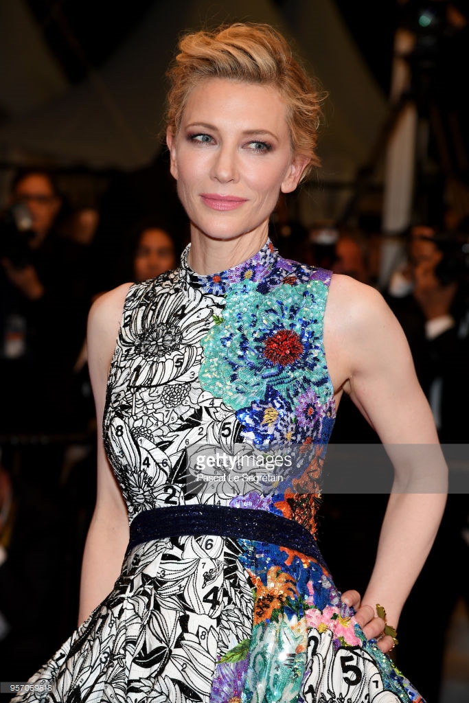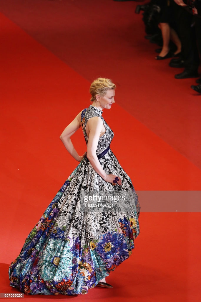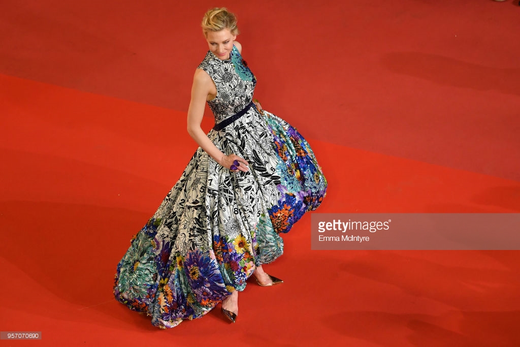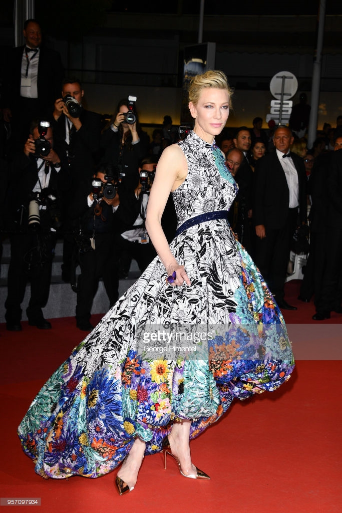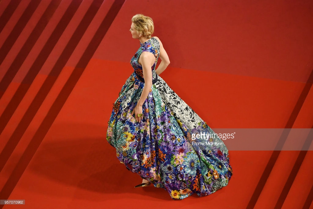 Chủ tịch ban giám khảo Cate Blanchett quý phái, diện bộ váy sặc sỡ như vườn hoa trên thảm đỏ, khiến không khí nên đây thêm náo nhiệt, tươi mới.