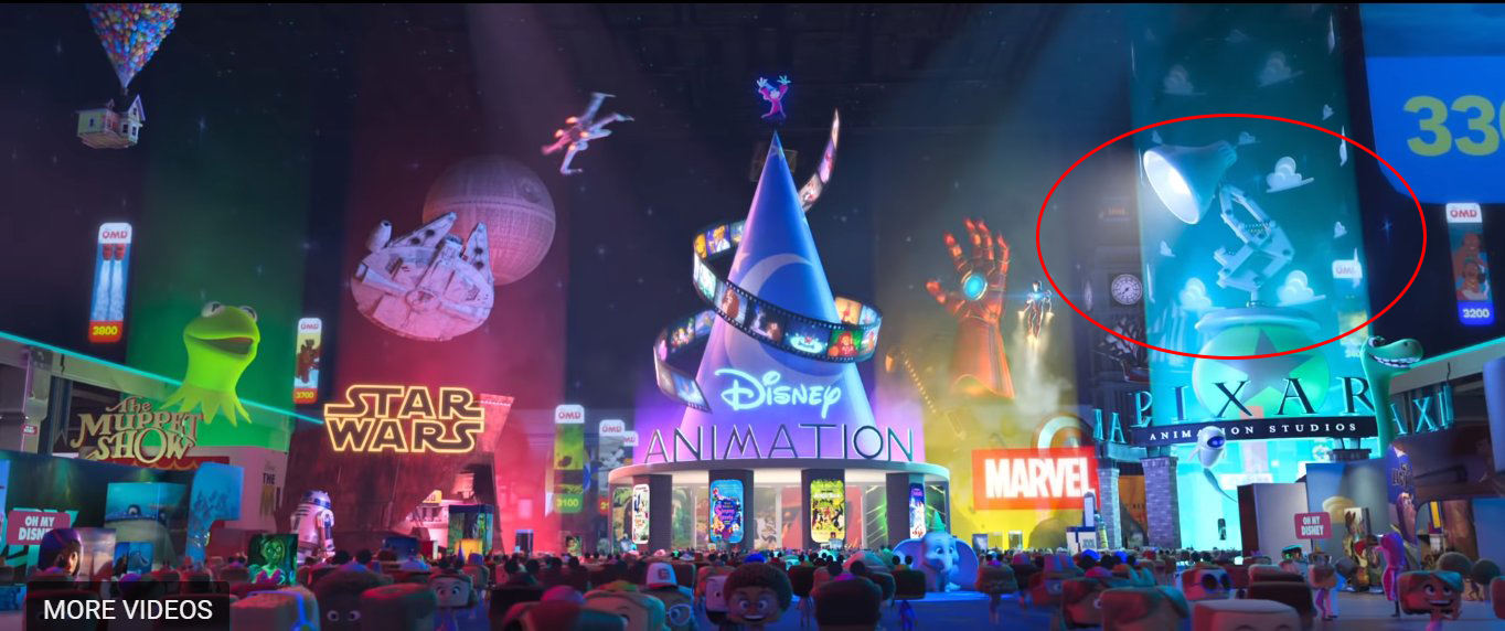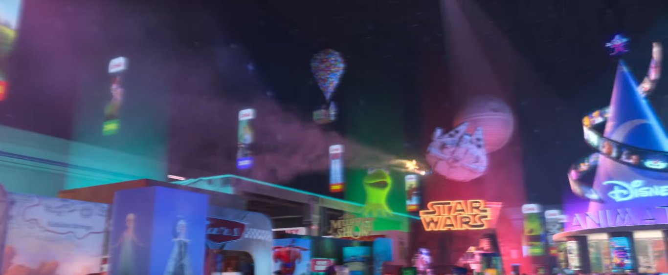 Kha khá những tấm biển quảng cáo cho các tựa phim hay nhất của Disney và Pixar đã xuất hiện trong trailer như Cars, Frozen, Toy Story, và Big Hero 6. Cụ thể, ở phân cảnh ấy, ngay trên lối đi xuất hiện hàng loạt các tấm áp phích rực rỡ có hình Lightning McQueen của Cars, rồi có cả Elsa team Frozen đang trình diễn phép thuật đóng băng của mình.