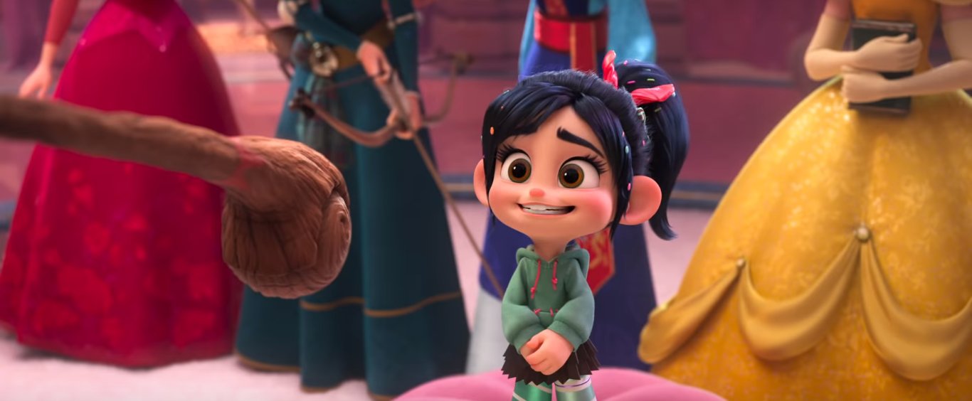 Cuộc nói chuyện của Rajah (từ Aladdin), Meeko (trong Pocahontas), Cinderella và một vài công chúa khác với Vanellope trong căn phòng dành riêng cho các nàng công chúa Disney thật sự rất thú vị. Tại đây, các công chúa thi nhau đặt câu hỏi cho cô bé Vanellope rằng liệu bé có sở hữu những yếu tố tạo nên “danh hiệu” công chúa của Disney hay không. Theo đó, một nàng công chúa thực thụ phải là người có mái tóc dài như suối, bàn tay phép thuật, từng bị bắt cóc, bị tẩm độc hay vướng phải những lời nguyền - Đó chính là những đặc trưng trong hoạt hình cổ tích của Nhà Chuột.
