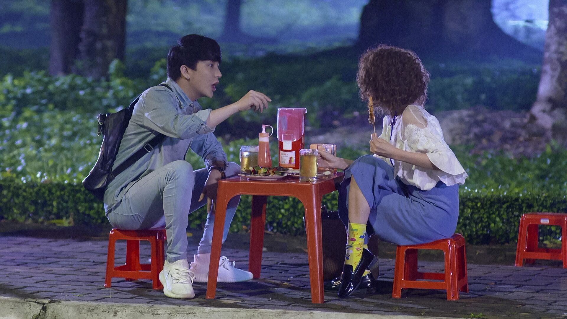 Và khi tình cờ nhìn thấy “Annabelle” ngồi uống bia một mình tại quán nướng vỉa hè quen thuộc, Minh Huy (B Trần) liền tìm cách “đào tẩu” khỏi cuộc hẹn với các đồng nghiệp cùng phòng và lao nhanh đến bên cạnh An Chi. Không biết lại giở trò “ăn ké” hay tò mò nhiều chuyện, nhưng sự xuất hiện của Minh Huy phần nào giúp An Chi quên đi được nỗi muộn phiền. Cả hai lại cùng nhau cải vã những chuyện vặt vãnh, tranh giành miếng xiên que thơm ngon trước mặt.