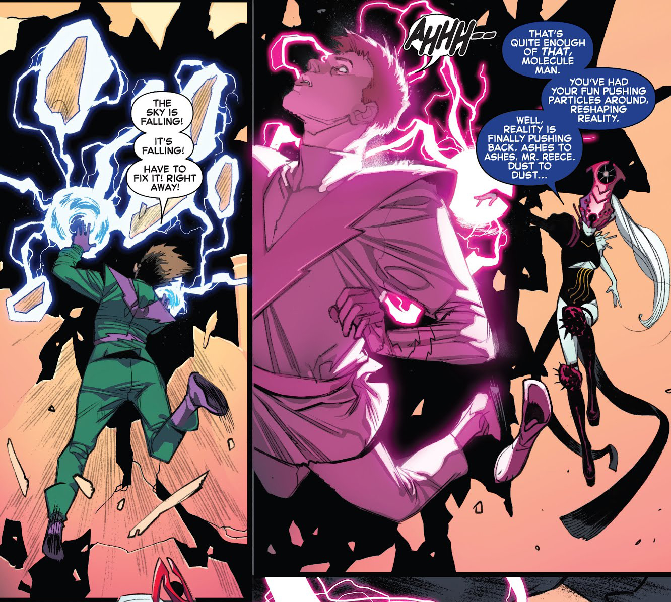 Tuy nhiên sau đó, trong series Fantastic Four (2018), khi Franklin cạn kiệt năng lượng Cosmic, Molecule Man đã bị giết hại dưới tay một thực thể có tên là Griever at the End of All Things, khi bà ta đến tấn công tổ chức Future Foundation nhằm ngăn việc tạo ra các thực tại.
