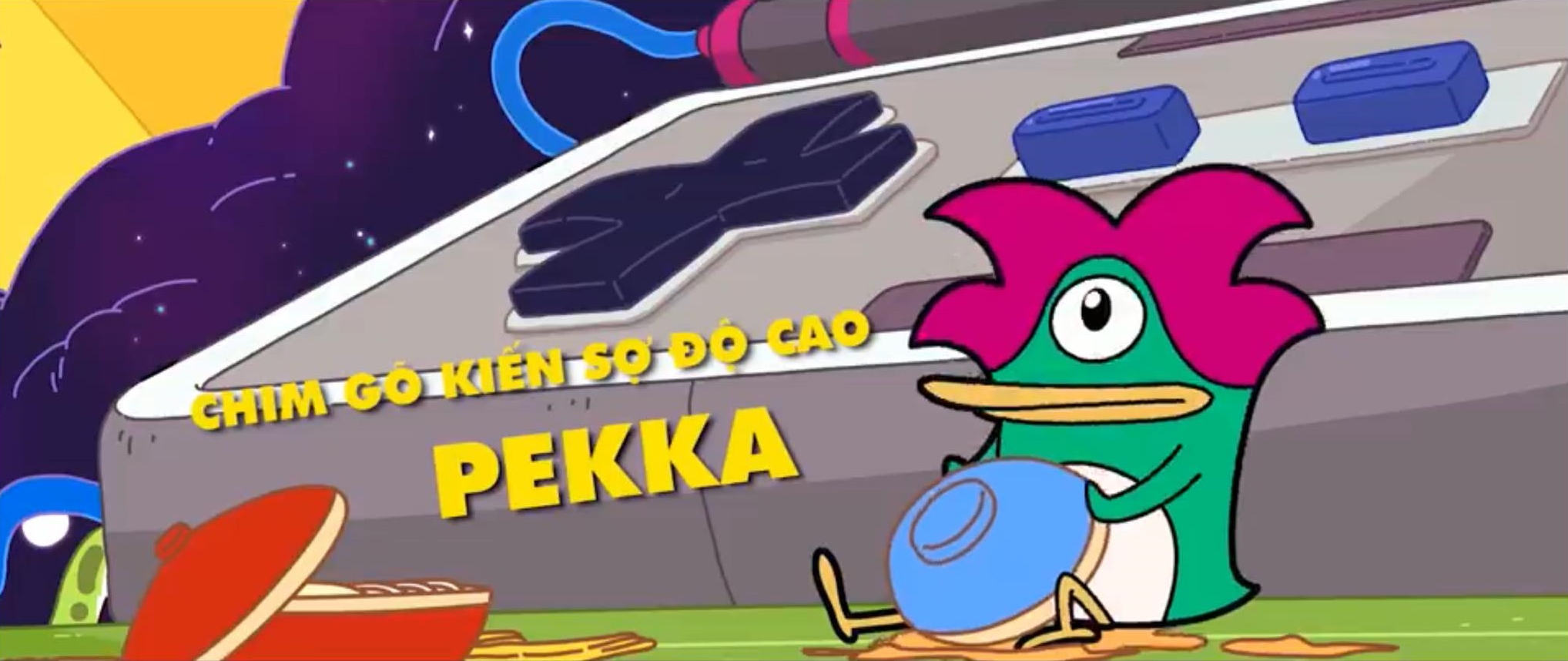 Bên cạnh đó, chú chim gõ kiến sợ độ cao Pekka cũng là nhân vật đáng yêu không kém. Luôn mang dáng vẻ có phần kỳ quặc, Pekka lại chính là ví dụ điển hình cho sự sáng tạo, khi mỗi phương án cậu đưa ra đều vô cùng “trời ơi” mà không ai có thể nghĩ ra được. Thế nhưng, cũng chính nhờ Pekka mà nhóm “kỳ cục” có thể vượt qua một số cửa ải hóc búa trên các hành tinh.