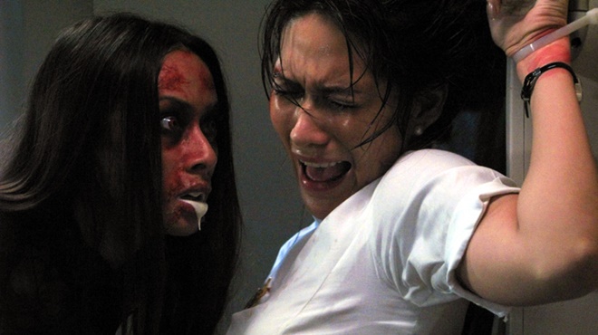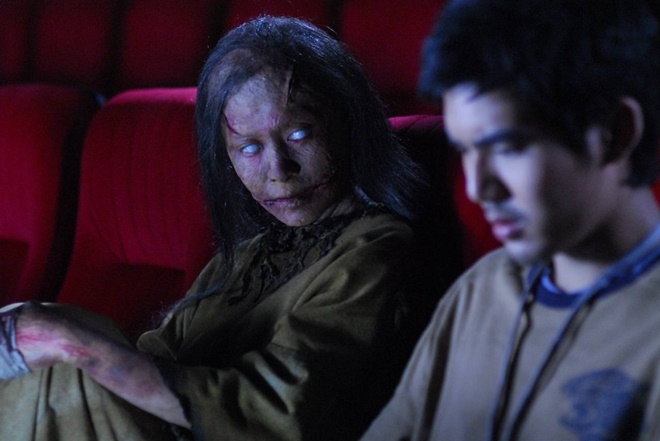 Chuyện ma không chỉ có trong phim mà hoàn toàn có thật và được tái dựng lại trong Coming soon khiến người xem sợ phát khiếp. Nhân vật chính là Chain, nhân viên rạp chiếu phim bị ma ám sau khi xem phim Evil Sprit - Linh hồn quỷ dữ. Phim mà Chain vô tình xem kể về người đàn bà tâm thần chuyên đi móc mắt trẻ con rồi bị người dân treo cổ đến chết. Giây phút ánh mắt đỏ ngầu của bà ta nhìn thằng vào màn hình trong giây phút hấp hối khiến người xem nổi da gà.