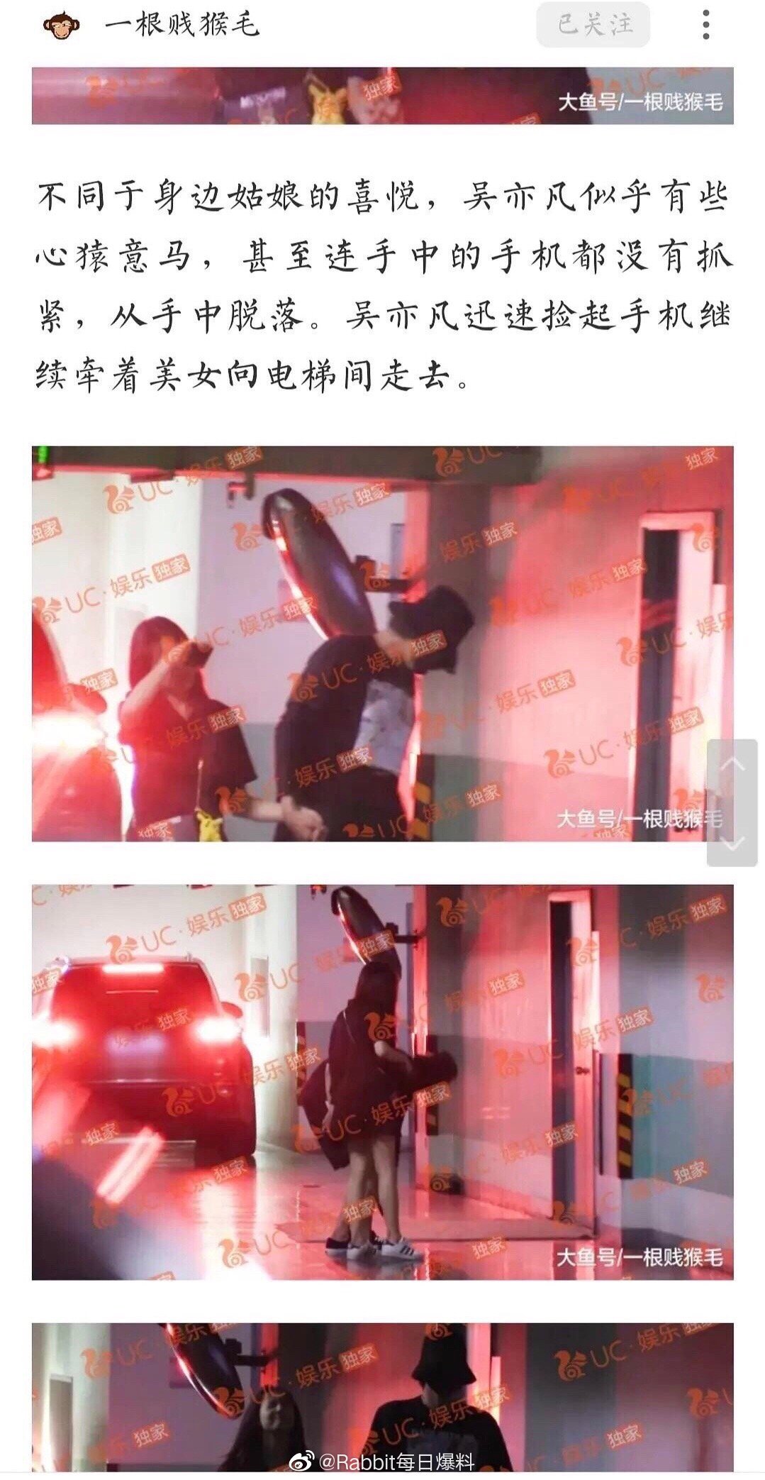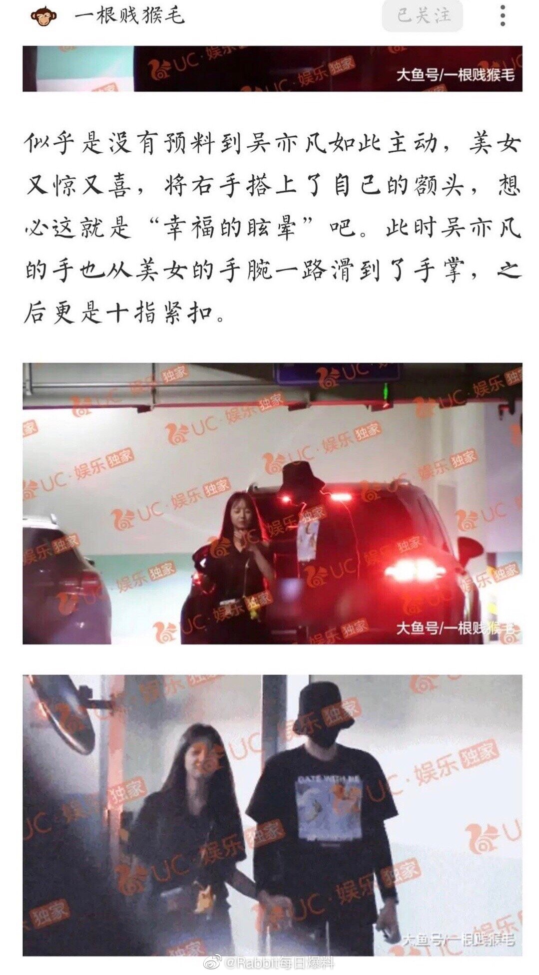 Sau khi xuống xe, Ngô Diệc Phàm nắm tay phía nữ, mười ngón tay đan chặt làm cô gái đó vui mừng, nụ cười luôn nở trên môi (Ngô Diệc Phàm là người chủ động trước). Thậm chí, vì quá căng thẳng mà Ngô Diệc Phàm làm rơi điện thoại phải ngừng lại nhặt.
