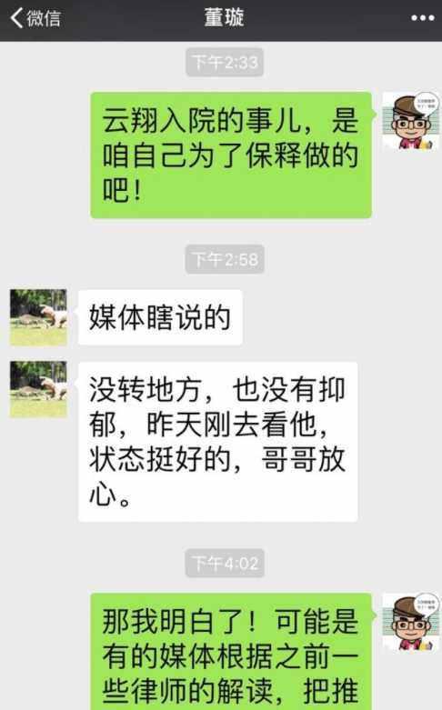 Đổng Tuyền (ĐT): Truyền thông bịa đặt đó. Không có sự việc chuyển đến bệnh viện phòng giam, cũng không có việc mắc phải chứng trầm cảm đâu. Hôm qua em vừa mới đi thăm anh ấy, tình trạng vẫn tốt, anh cứ yên tâm đi.