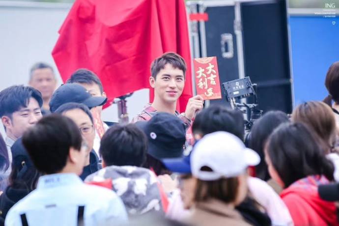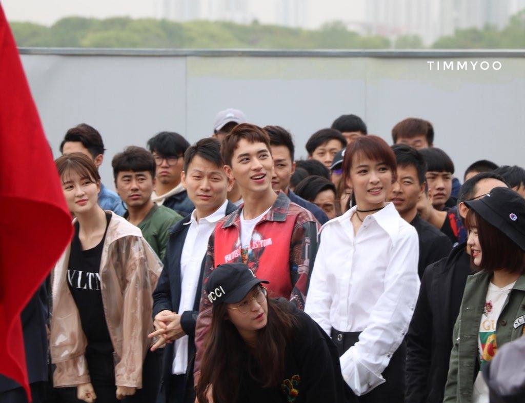 Anh chàng diện bộ trang phục trẻ trung, thoải mái xuất hiện giữa dàn diễn viên và ekip làm phim.
