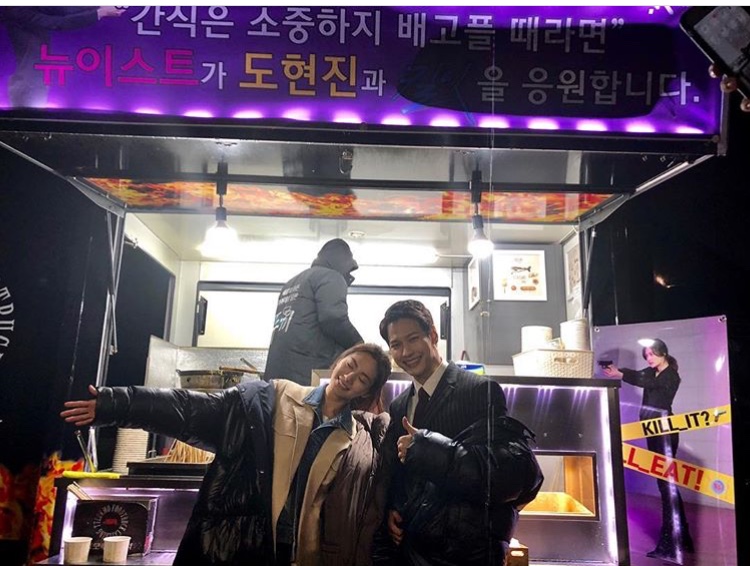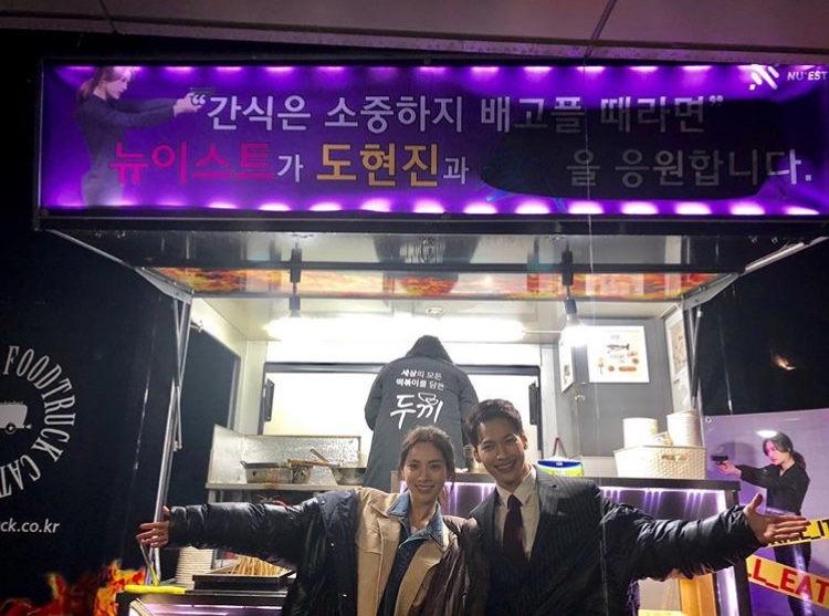 Trên chiếc xe tải, các thành viên của NU'EST nhắn nhủ thông điệp: “Đồ ăn nhẹ rất hữu ích, quý giá khi đói đó ạ. NU’EST ủng hộ cổ vũ Do yun Jin và 'Kill It'”. Trước đó một ngày, thành viên của nhóm Seventeen cũng gửi xe đồ ăn nhẹ đến trường quay cho Nana. Cô nói: “Chị cảm ơn nhiều, các chàng trai à!!! #Seventeen”. Được biết, các nghệ sĩ đang hoạt động dưới sự quản lý của công ty Pledis Entertainment.