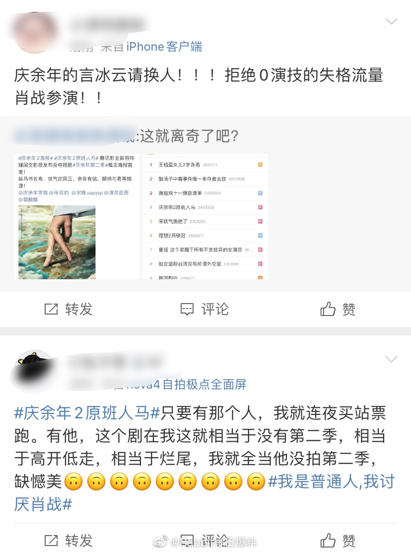 Đối với những bộ phim có phần 2, khán giả đều mong muốn toàn bộ diễn viên vẫn sẽ tiếp tục góp mặt, tuy nhiên Khánh dư niên có lẽ là một trường hợp ngoại lệ hiếm hoi. Sau khi dự án Khánh dư niên 2 chính thức khởi động, có rất nhiều netizen đều yêu cầu nhà sản xuất đổi Tiêu Chiến thành một diễn viên khác, thậm chí còn cho biết nếu nam diễn viên Trần tình lệnh vẫn xuất hiện thì họ sẽ không xem phim.