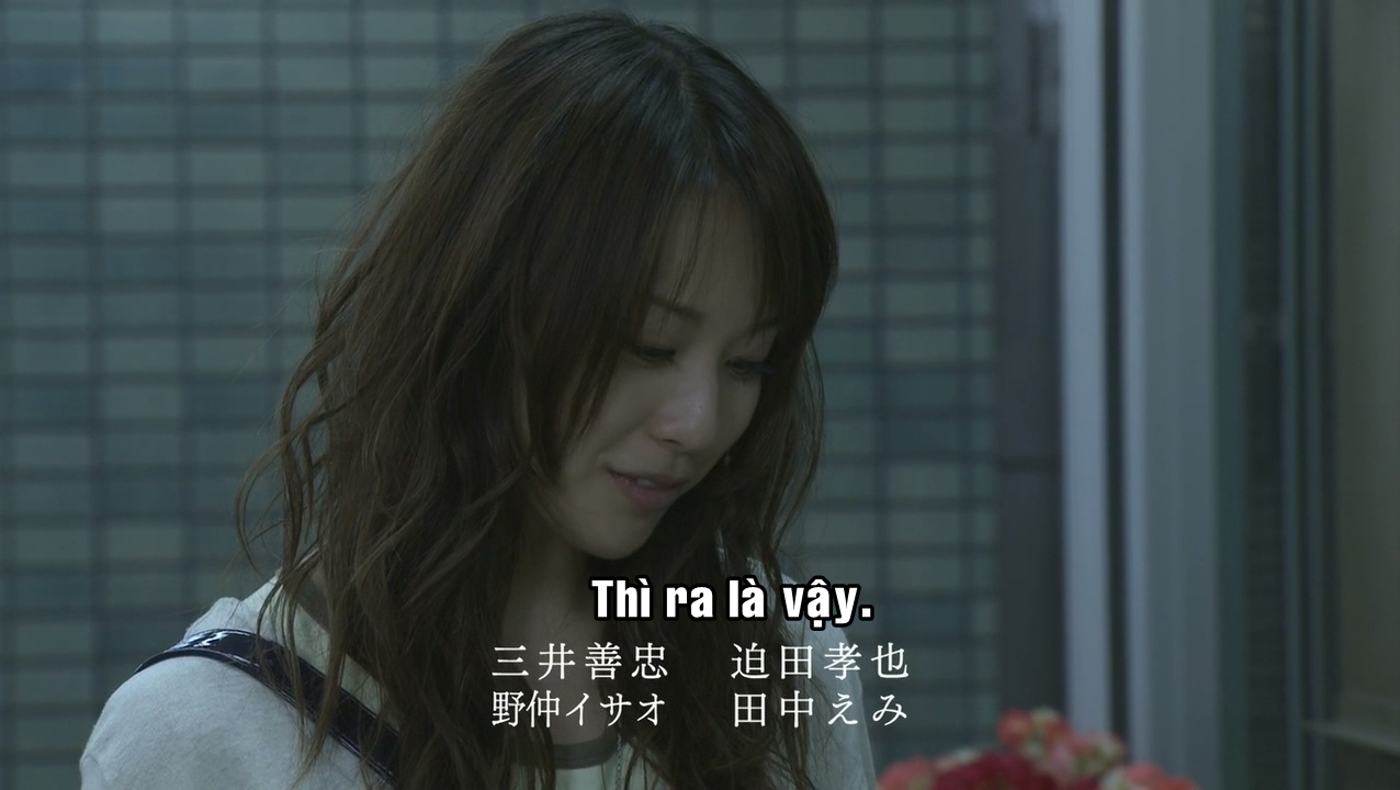 Giờ thì chúng ta hãy cùng xem lại phân đoạn cho thấy chỉ bằng một câu nói thôi nhưng Boss Eriko cũng đủ làm khán giả phải chao đảo “Sao có thể ngầu đến thế?”. Phân đoạn này nằm ở cuối tập 5 sau khi khép lại vụ án giết người hàng loạt và bắt cóc cảnh sát mà cấp dưới của Eriko là Kimoto Mami (do Toda Erika đóng) chính là nạn nhân. Kimoto đã đứng đợi sếp mình đến khi tan sở và bất ngờ cô được sếp tặng một món quà. Phụ đề trong hình được thực hiện bởi blog Góc của Gạo.