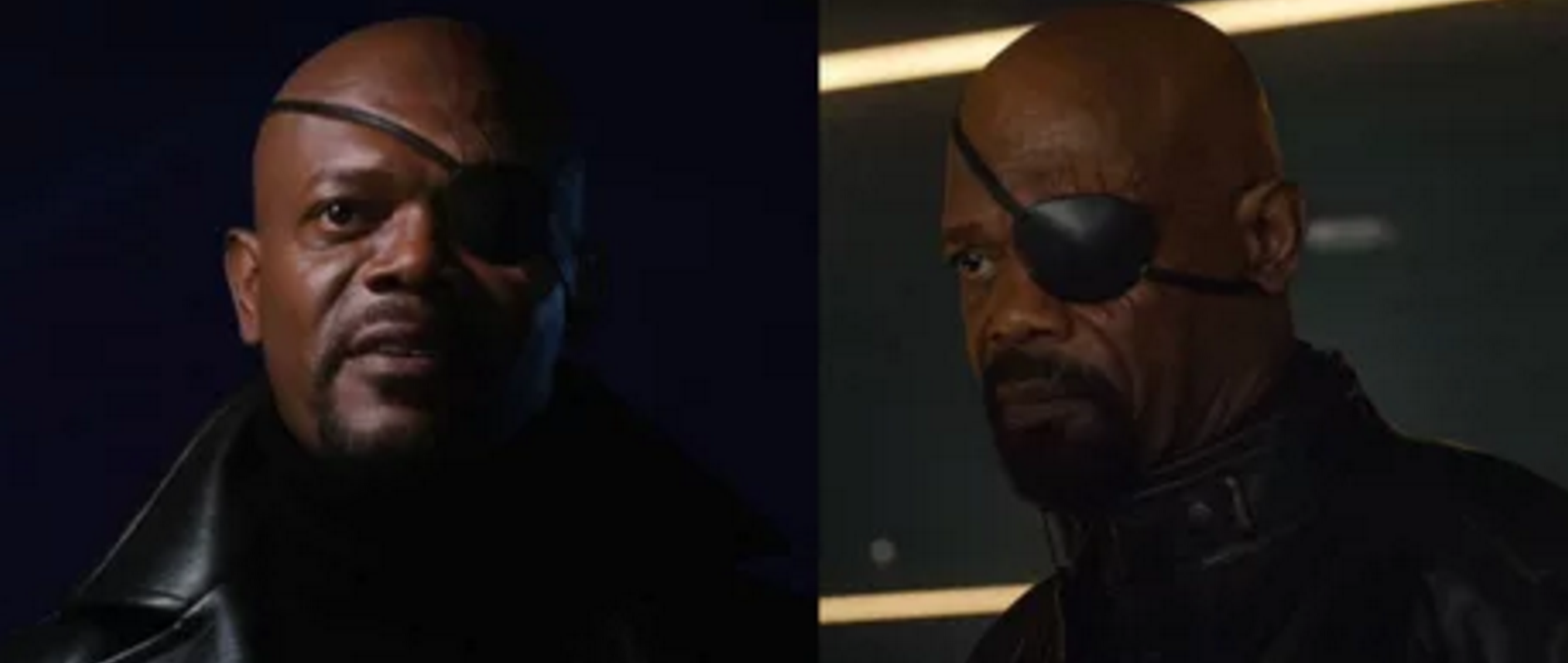 Gương mặt Nick Fury có vẻ nghiêm nghị hơn từ Iron Man 2008 đến Avengers: Age of Ultron 2015.