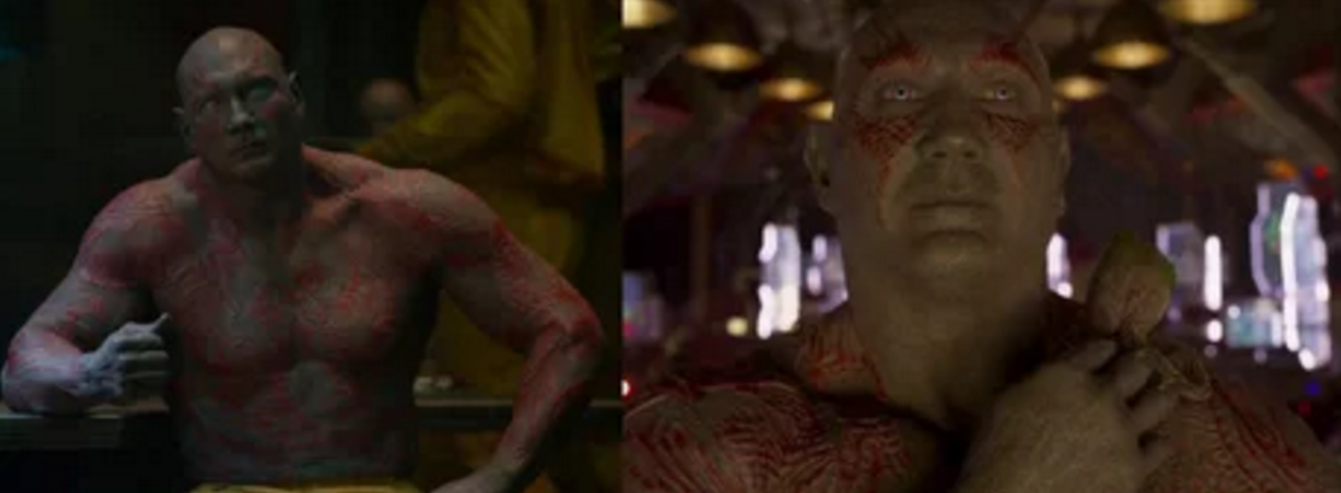 Với thân hình đầy hình xăm và sẹo bao bọc thế này, người ta khó lòng phát hiện ra sự già đi của Drax.