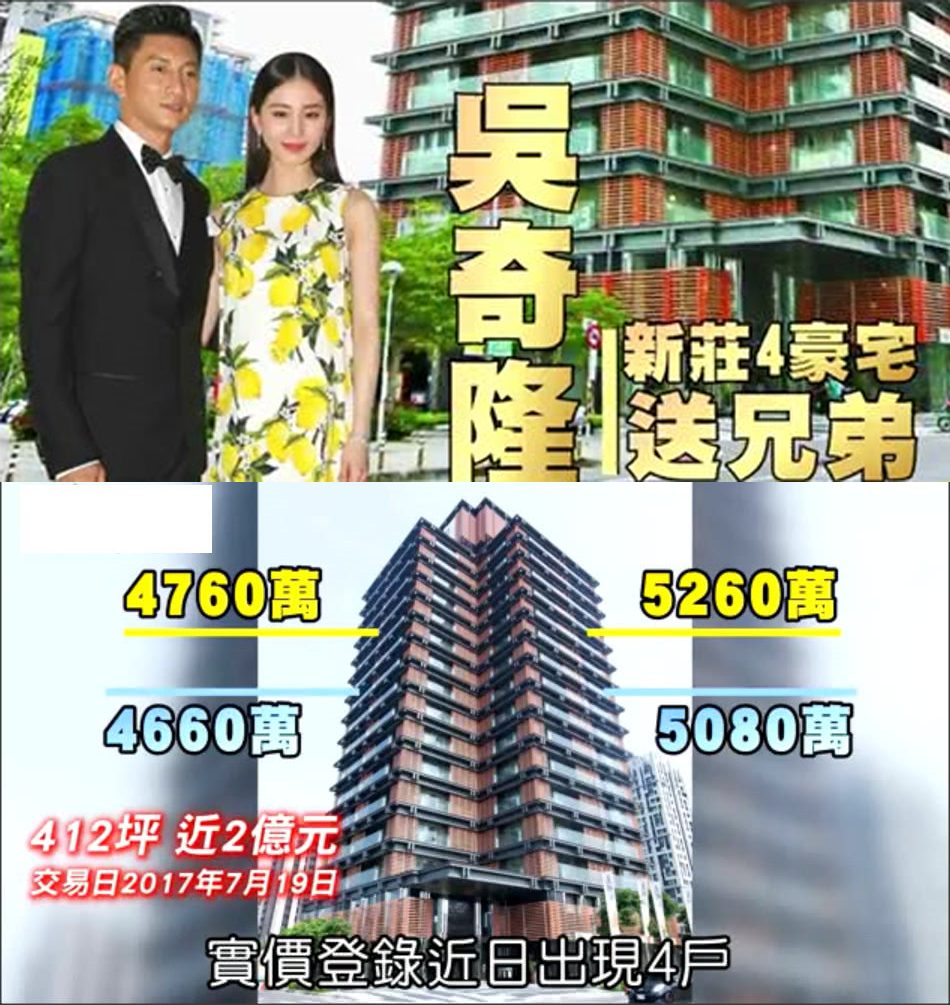 Ngày 30 tháng 4, theo truyền thông Đài Loan vào năm 2017 Ngô Kỳ Long đã bỏ ra 190 triệu tiền Đài Loan (khoảng 41 triệu NDT, tương đương hơn 140 tỷ đồng) để mua bốn căn nhà sang trọng tại Tân Trang, trong đó có căn trị giá là 55 triệu tiền Đài Loan.