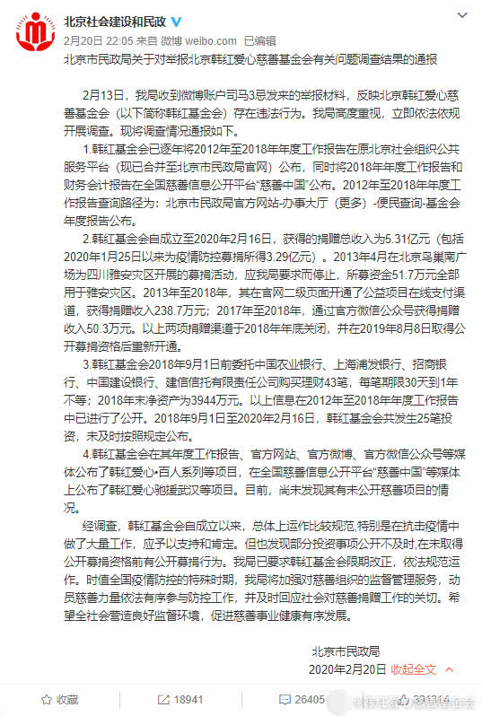 Thông báo kết quả điều tra liên quan đến quỹ từ thiện Hàn Hồng