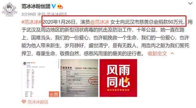 Phạm Băng Băng quyên góp 500.000 NDT cho quỹ từ thiện ở Vũ Hán