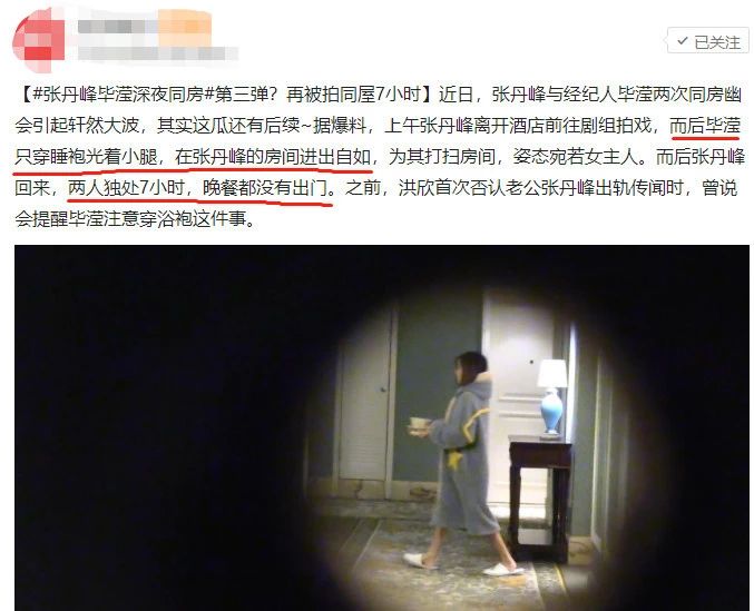 3. Tin đồn: Trên mạng lan truyền Trương Đan Phong và Tất Huỳnh hẹn hò thân mật trong khách sạn đến sáng sớm, đồng thời mặc áo ngủ ra ra vào vào