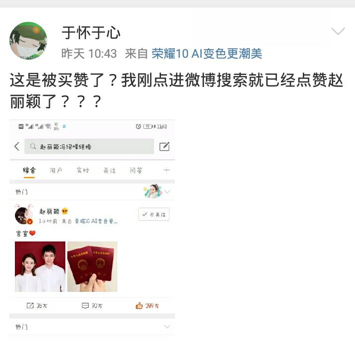 - #Triệu Lệ Dĩnh Phùng Thiệu Phong kết hôn# có thể không mua like được không? Ừm, tự nhiên like là thấy có chút không vui rồi đó.
