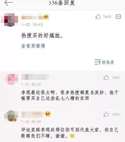 Lúc ấy, chủ đề về Trần Nghiên Hi bỗng dưng xuất hiện trên hot search gây ra tình huống dở khóc dở cười. Bởi vì số lượng bình luận nhắc về “Tiểu Long Nữ” không quá nhiều để có thể lọt vào top tìm kiếm. Trong khi đó, dưới bài viết về cô lại tràn ngập thủy quân nhắc về Lý Hiện mới khiến cho bài viết này vô tình lên top hot search. Việc này khiến cho đoàn đội hai bên lúng túng và xấu hổ. Dân mạng được phen mỉa mai, trêu chọc trước hành vi dùng thủy quân quá đà, vô tội vạ của Lý Hiện.