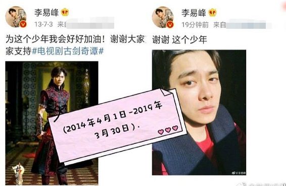 Vào ngày 30/3 vừa qua, nam diễn viên Lý Dịch Phong đột nhiên vui vẻ đăng hình tự sướng lên weibo với caption: “Cảm ơn vị thiếu niên này” làm không ít cư dân mạng tò mò. Sau đó, có tin tức truyền ra hợp đồng giữa Lý Dịch Phong và công ty Hoan Thụy đã được chấm dứt.